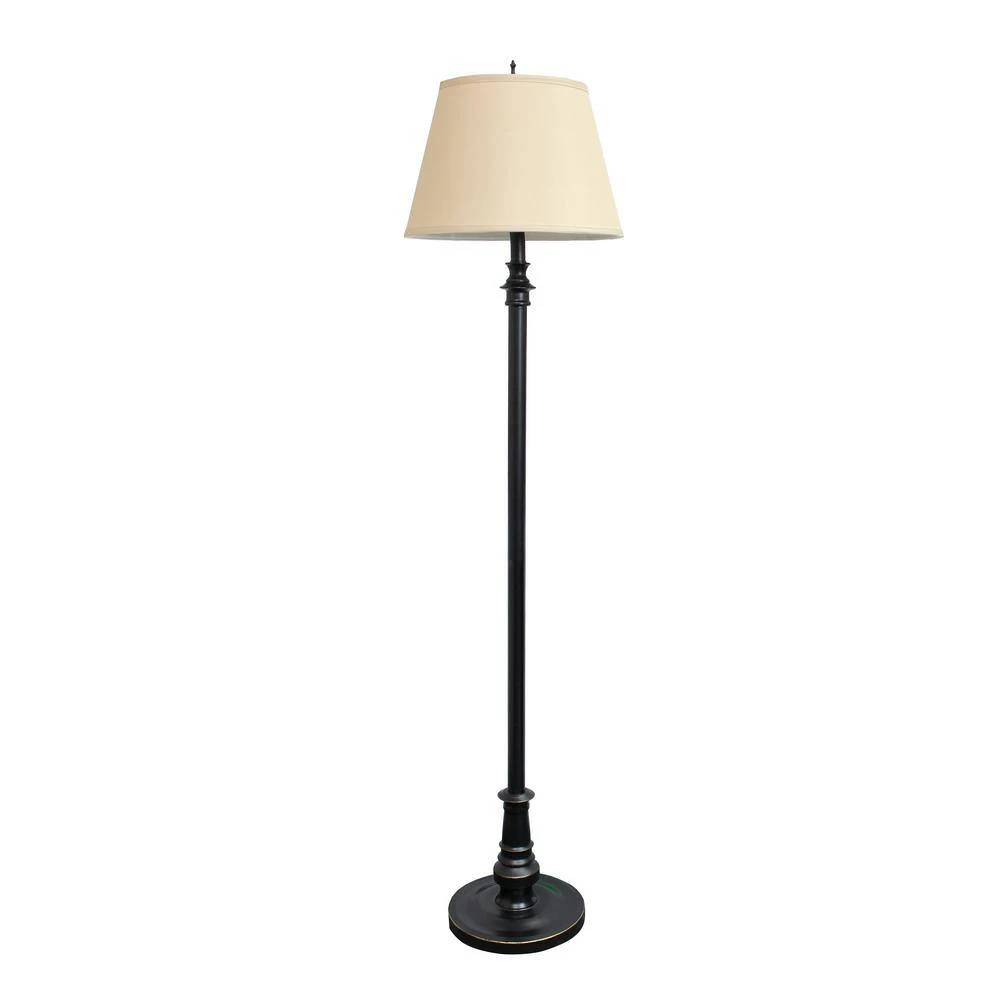 Decorate your home with this beautiful 3 piece matching table and floor lamp set! The restoration bronze detail embraces the curved lines and details throughout the base of each lamp, and is paired with a lovely tan fabric shade to bring you a warm, welcoming ambiance while satisfying your lighting needs. Perfect for a rustic, industrial, or classic style space!