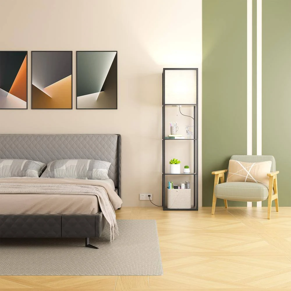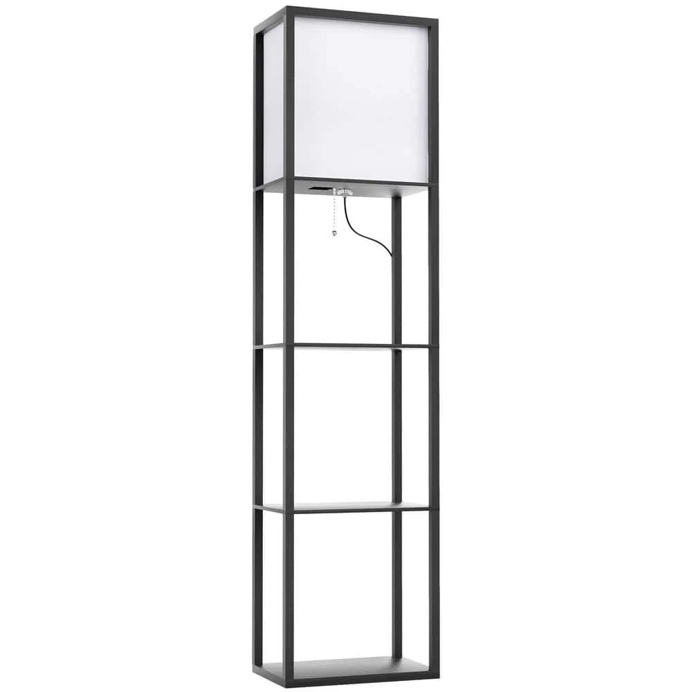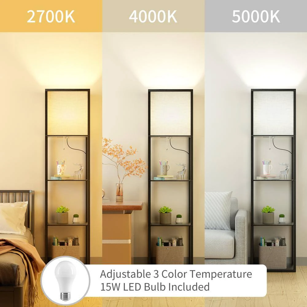 This floor lamp, size of 15.7 in. x 10.2 in. x 64.1 in., has more storage space than other slim floor lamp. We upgraded its width to 15.7 in. It’s wider and more stable than other shelf lamps. The black shelf floor lamp, modern styles, fit mostly home decoration. The shelf lamp is ideal choice for living room, bedroom, office, apartment or dorm. The standing lamp is equipped with a 15-Watt LED bulb for free, which is illuminate your area and also energy-saving. In addition, floor lamps with 3 color temperatures, warm yellow, cold white and cool white, providing a good lighting environment for you to read. With a classic pull chain design, it can control the lighting of floor lamp. Modern shelf floor lamp with the memory function, there is no need to reset the color when opened again, which can remember your brightness and color temperature last used.