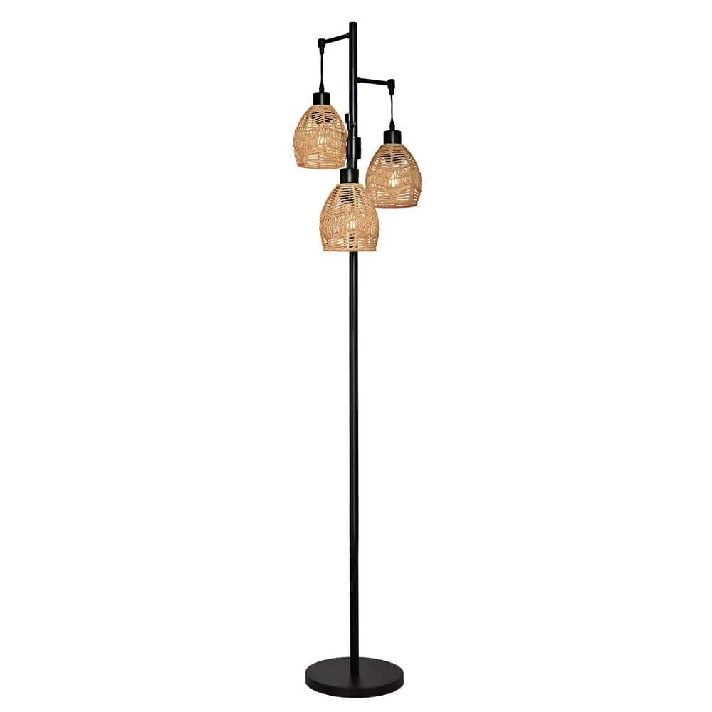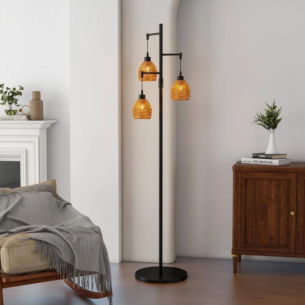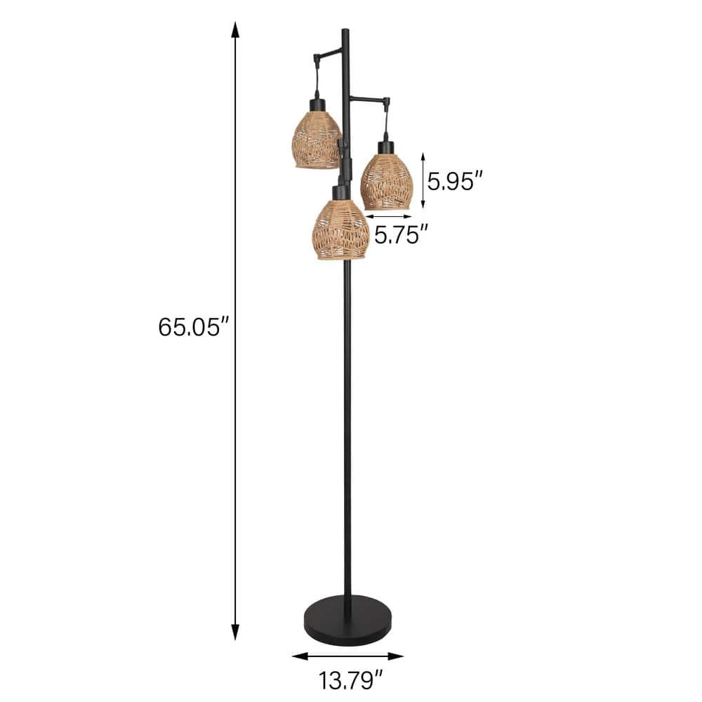 - Elegant Minimalist & Classical Appearance:This space-saving 3 lights tree floor lamp brings tall visual effects when creating an artistic ambiance in your room.Illuminate your space in classic and contemporary style.65.05”vintage tall pole lamp is crafted of solid rattan wood and metal frame,it is an ideal choice for your home with the convenient matching footswitch.This rustic standing lamp with rattan shades is a great gift for parents or friends.