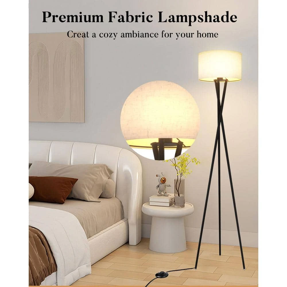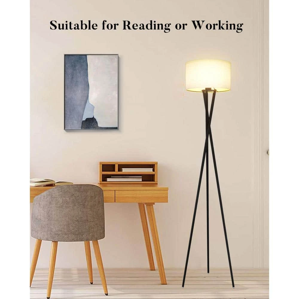 The 66 in. Black Tripod Floor Lamp is made of high-quality metal materials to enhance durability and features a tripod design. Provide a fabric lampshade to create soft and comfortable lighting, effectively protecting your eyes. This floor lamp is compatible with various E26 LED, CFL, incandescent and halogen bulbs. It comes with a 9-Watt 3000K LED bulb that does not overheat or flash, making it perfect for work, reading and daily use.