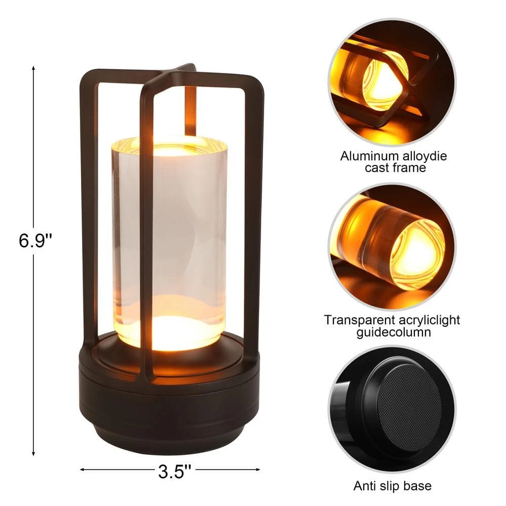 This portable desk lamp is suitable for indoor/outdoor use. Its modern design and delicate texture not only serve as lighting equipment, but also provide you with a personalized atmosphere. Equipped with 3 brightness settings, it can meet various lighting needs indoors or outdoors. It has a built-in rechargeable battery and a C-type charging port for you to charge.