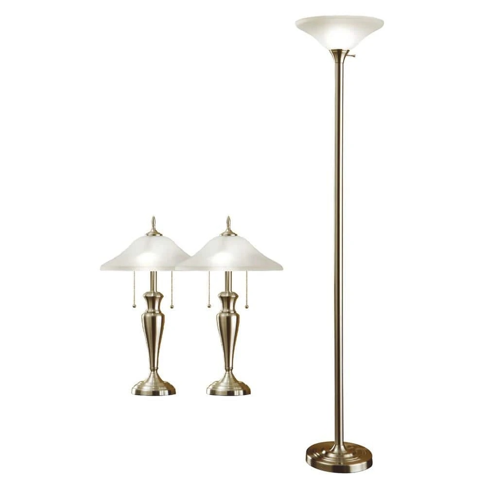 - Set includes: 2-table lamps and 1-torchiere floor lamp