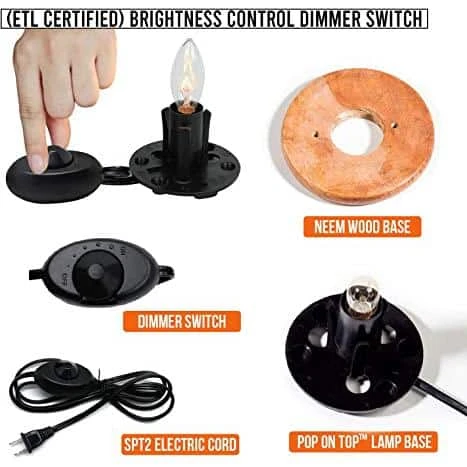 Unique salt lamp is made from Natural Himalayan salt crystals hand mined in the Himalayan Mountains. Once lit the lamp will emit a calming Amber color. Heating the salt with the included bulb releases negative ions into the air, creating an effect similar to an ionizer, purifying the surrounding air Includes: 6 ft. Power Cord, 15-Watt Light Bulb, Rotary dimmer switch. Material: Himalayan Crystal Salt, Neem wood base. Finish: Natural. Our cord is UL certified, whole lamp is ETL certified The Himalayan Natural Crystal Salt Lamp also works as an air purifier. When lit, the lamp emits negative ions that fight against positively charged particles that cause you to feel stuffy and sluggish. The lit salt crystal clears the air naturally of allergens like smoke, pet dander, pollens and other air pollutants. It dilutes odors so that you can breathe easier.