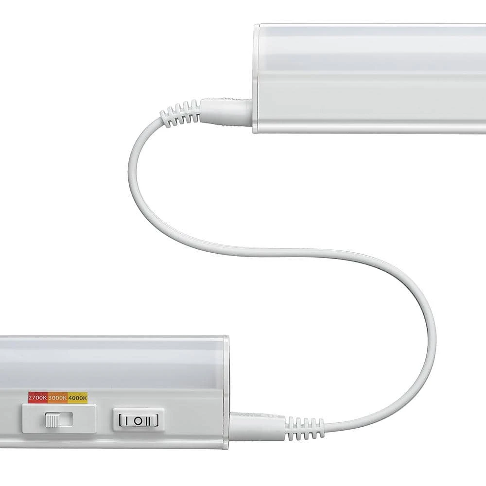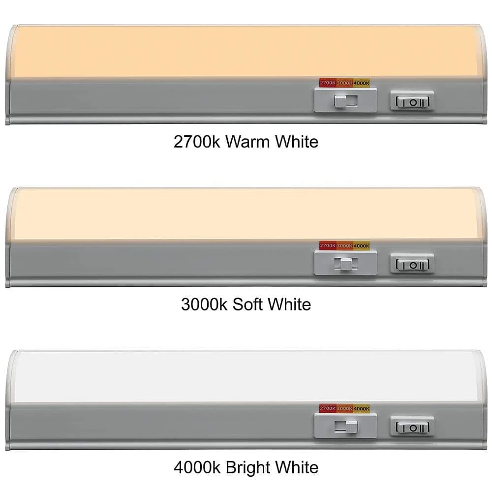 Commercial Electric’s 9 in. LED Color Changing CCTs Under Cabinet Light Linkable is designed to replace over-heated under cabinet puck lights and outdated fluorescent, incandescent or xenon fixtures with premium LED technology. You choose from (3) color temperatures 2700K Warm White, 3000K Soft White or 5000K Daylight with a flip of a switch directly on the fixture. It is linkable up to 40 units and is a maintenance free fixture with no bulbs to replace. Perfect for food preparation, accent lighting or walk safely around at night. Great for under desk-hutch, work stations, cabinet unit, shelving laundry rooms, workshops, storage rooms or closets.