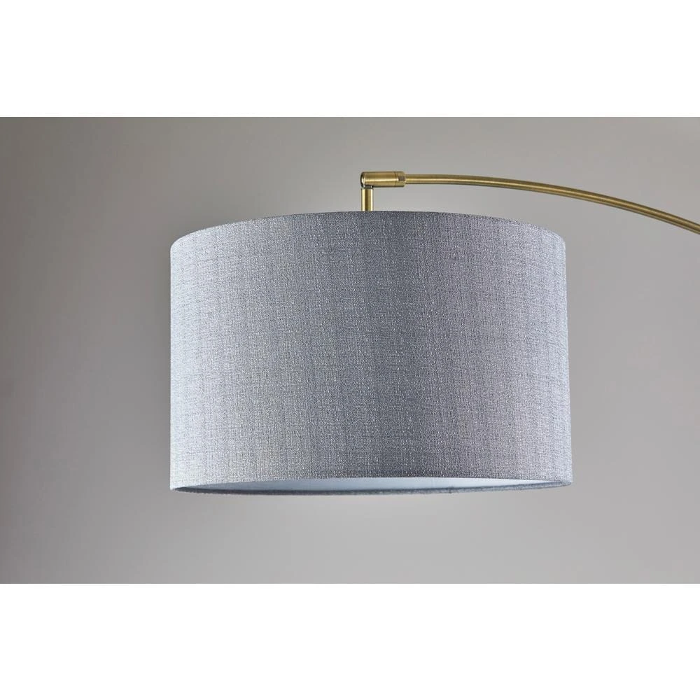 A classic, mid-century look, the Bergen Arc Lamp is a modern lamp that provides warm, room-filling light. Black and antique brass metals are mixed to create a style that can fit into many settings. At a 73.5 in. total height and extending out 48 in., the Bergen Arc Lamp is perfect for next to the sofa. A soft, grey fabric shade reveals a delicate texture when lit. A simple on/off rotary switch is located on the pole controlling a 100-Watt bulb.