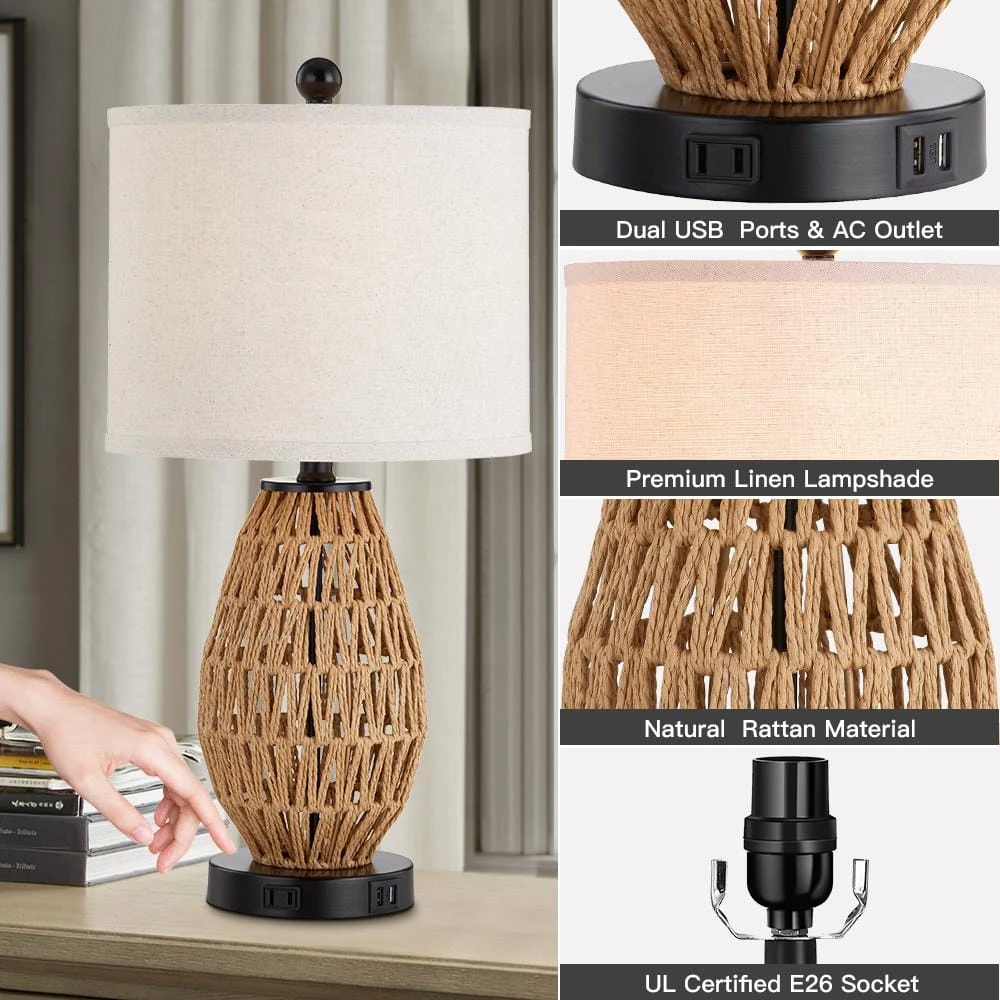 - 3-way dimmable touch control: our woven living room table lamps are designed with 3-level brightness to meet your different needs for lighting just lightly tap on anywhere of lamp base to make quickly change brightness level and response sensitively without delay, saving you from the trouble of fumbling with the switch in the dark low-grade is a perfect nightlight for sleeping or nursing, mid-grade is ideal for daily use and high-grade is excellent for reading, studying and working