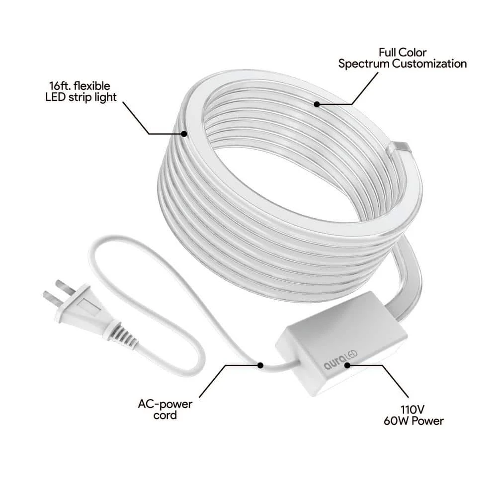- 16ft. flexible LED strip light with customizable color spectrum, brightness, and light modes