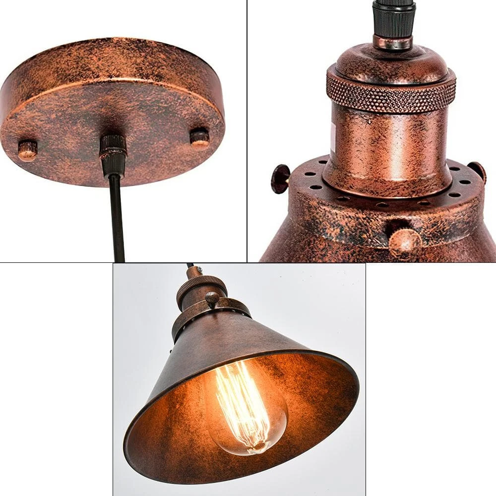 Long Description: Enhance your space with this rustic 1-Light Industrial Cone Pendant Light from HUOKU, designed with a stylish vintage aesthetic and a durable metal construction. The cone-shaped lampshade, with an elegant skirt-trim edge, adds a refined touch to any setting, from farmhouse kitchens to modern industrial lofts. The warm, antique copper finish complements a variety of decor styles, offering a cozy ambiance above dining tables, bars, or kitchen islands. This versatile pendant light is both functional and stylish, easily adjustable in hanging height and compatible with sloped ceilings, making it a perfect fit for various room layouts.