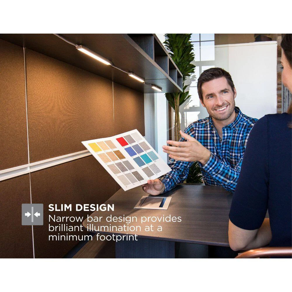 Fully-equipped and ready for a quick, tool-free installation, this magnetic under cabinet task light kit with a built-in motion sensor is an essential addition to any workspace. Self-adhesive mounts allow for easy application practically anywhere, while optional magnets are ideal for metal surfaces like office and cubicle shelving. Easily adjust the intensity of illumination as these 3 ultra-thin 12 in. light bars include 10 brightness levels. For further convenience, they also feature an optional automatic shutoff after 3-hours. Powerful LEDs simulate natural daylight, while providing high-contrast task lighting that reduces eyestrain and increases productivity. Say goodbye to harsh florescent office task lights and hello to high quality, natural daylight with PureOptics LED magnetic under cabinet lights.