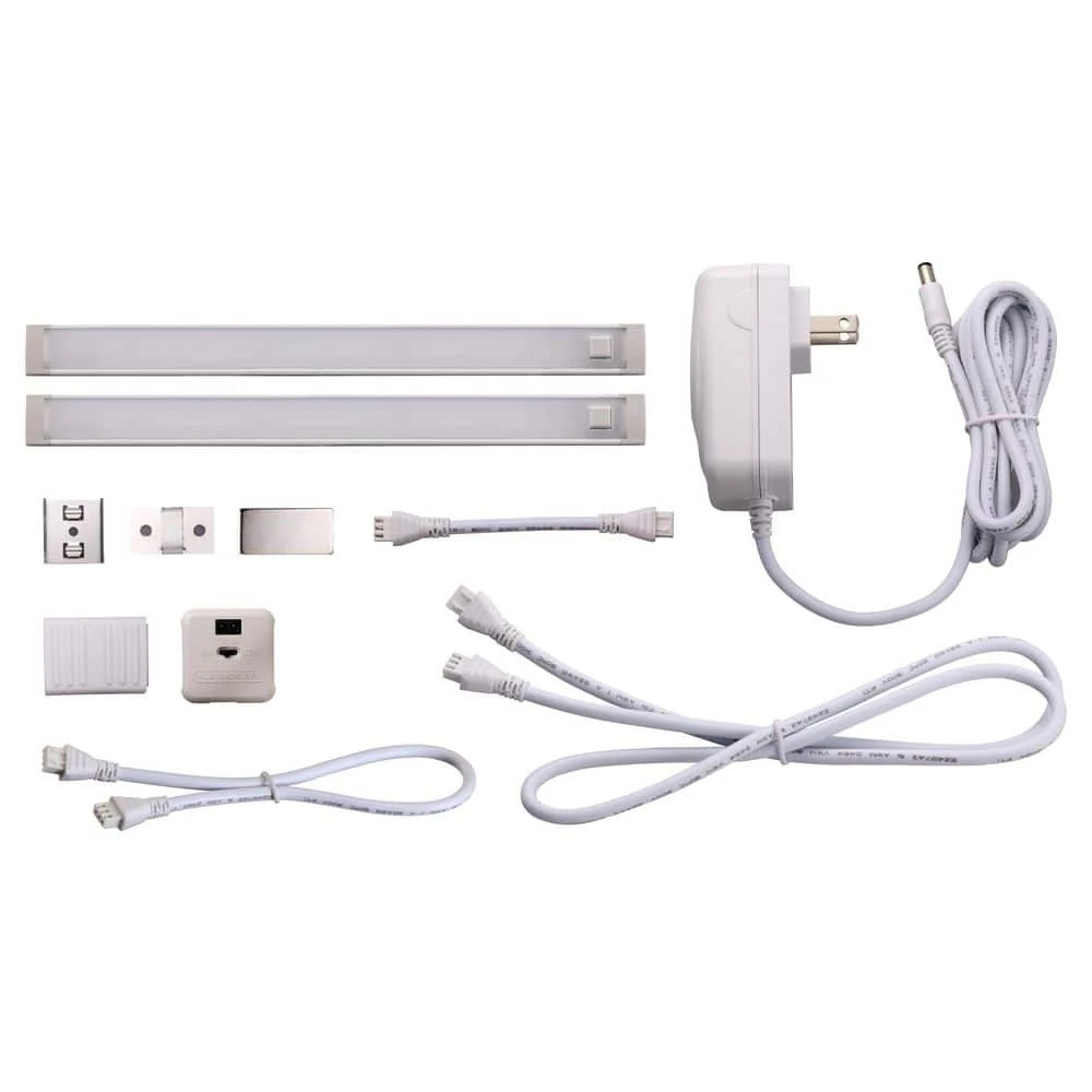 - Included components: LED light bar (power summary): 2, control box: 1, AC adapter: 1, bar mounting clips: 6, magnetic mounting clips: 8, wire mounting clips: 8, mounting screws: 4, jumper extender: 1, 4 in. jumper wire: 2, 12 in. jumper wire: 1, 30 in. jumper wire: 2
