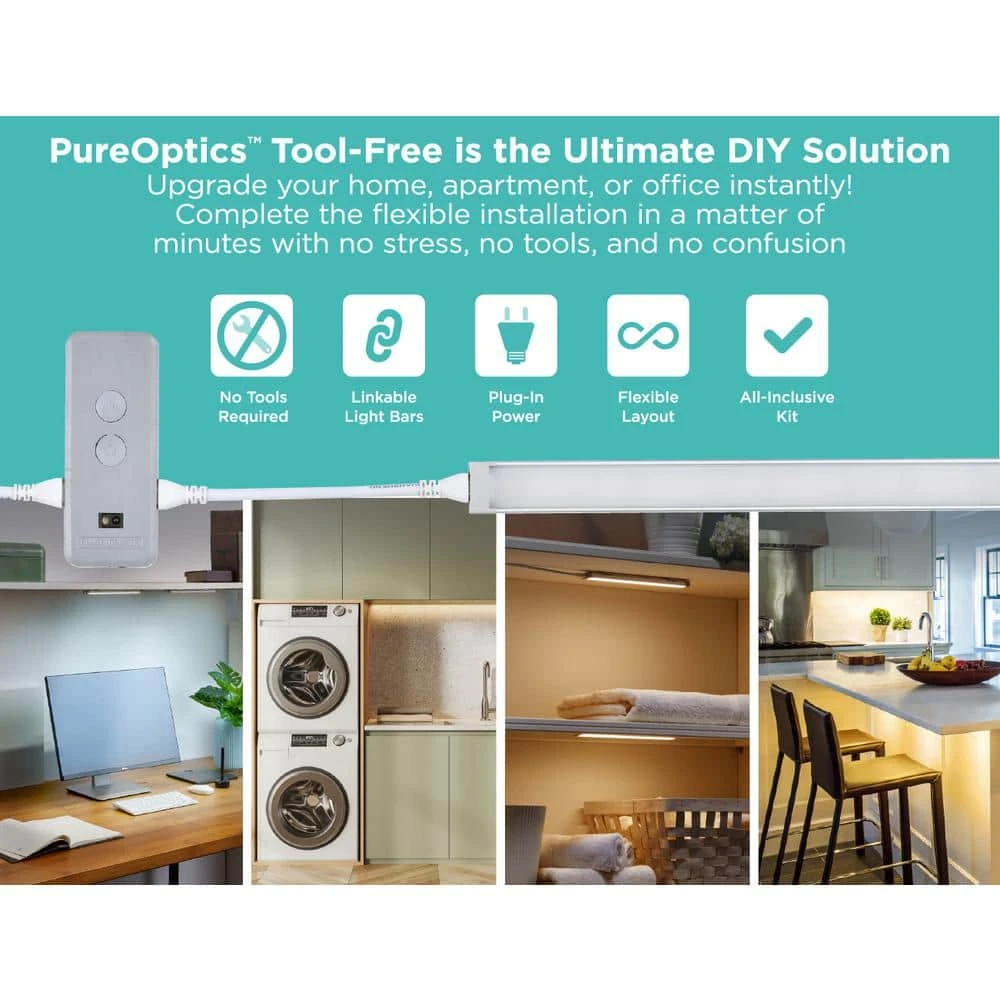- Pureoptics led technology: high performance LEDs are up to 3X brighter than similar under cabinet lights to dramatically elevate any space in your life each 9 in. light bar boasts 320 lumens and lasts up to 50,000 hours