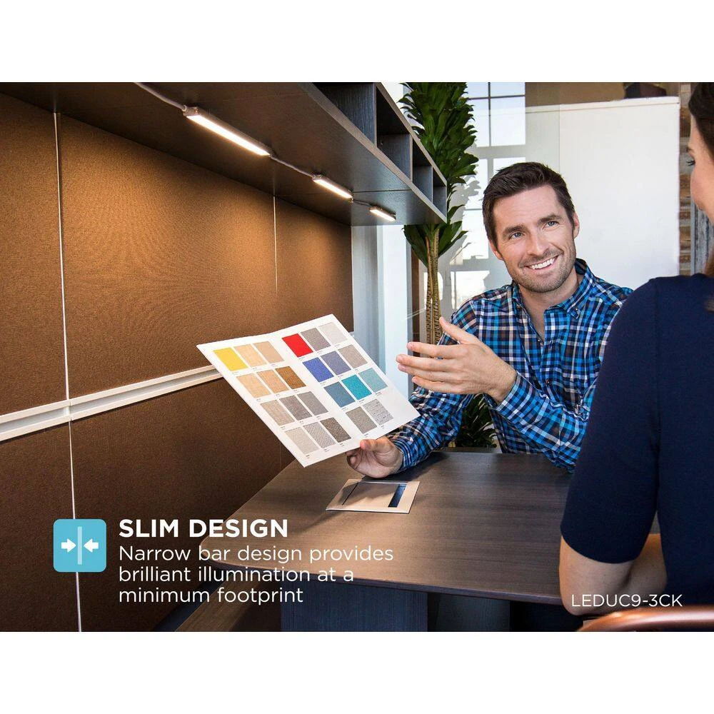 - Low-profile design is easily hidden under cabinets while providing luminous task and accent lighting that is free of shadows and glares