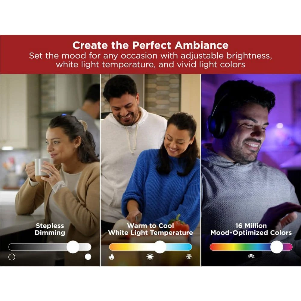 - Full color range for a balanced atmosphere: tailor your lighting by selecting warm to cool white light (3000k/ 4000k/5000 k) , or pick a range of 16million vivid colors to suit your mood, stepless dimming and a variety of custom modes allows you to set the perfect scene for any occasion