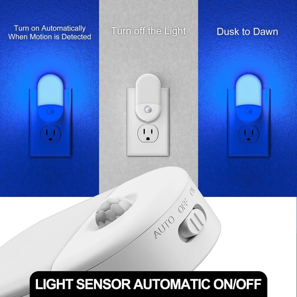 - This blue LED night light 2-pack features built-in motion sensors, turning on only when movement is detected in the dark.