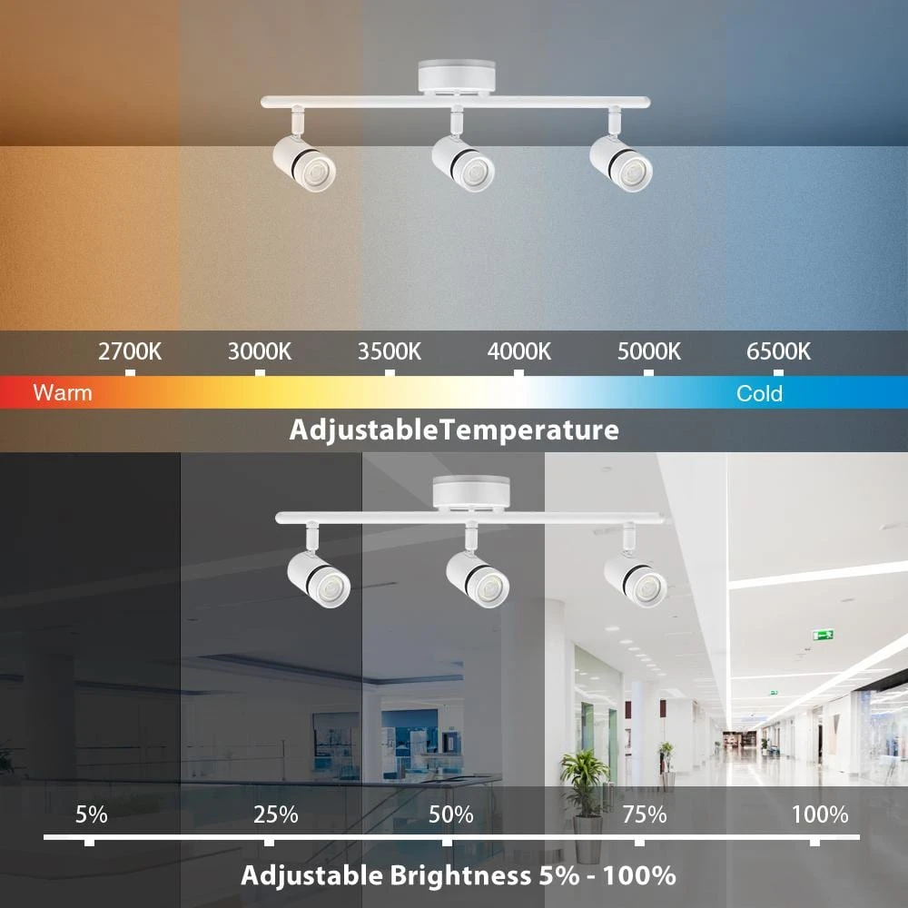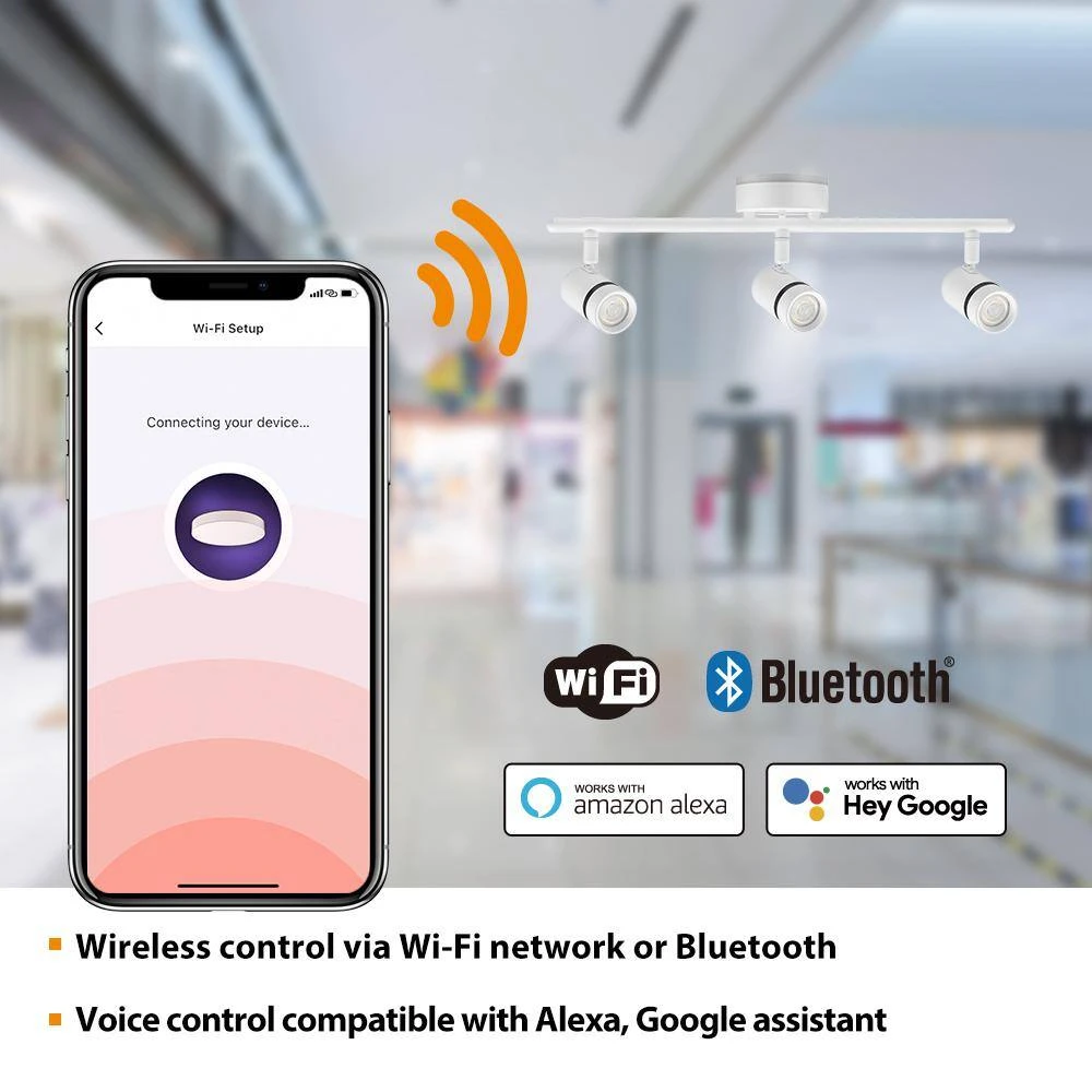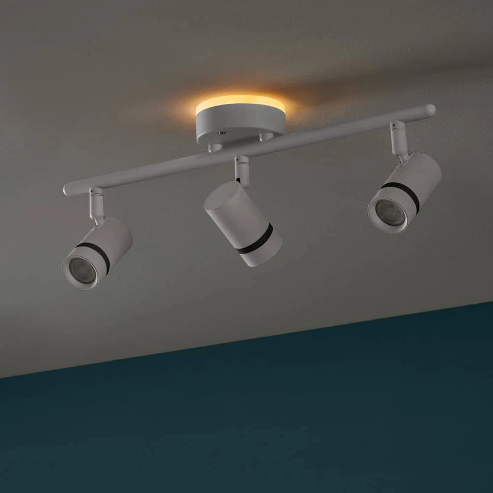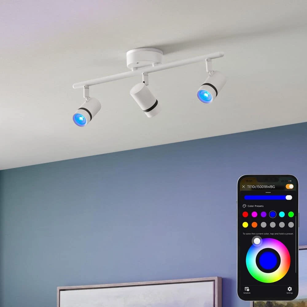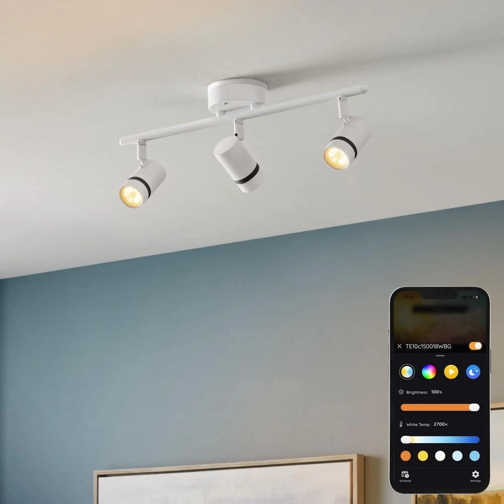 Hampton Bay LED 3-Light Hubspace Fixed Track Lighting Kit, features with Night light and Interchangeable Decorative Rings. LED Heads pivot and rotate to direct light where it is needed most. This light can be controlled through the Hubspace app (no hub required) on your smart devices or through Amazon Alexa and Google Assistant with voice controls. You have the freedom to select from endless amounts of color options as well as tunable white color options between 2700K-6500K. The light has a full brightness of 1500 Lumens and is also dimmable to your desired brightness level via the app. Light is not compatible with wall dimmers. Night light mode is a great addition to any room, you can select it via hubspace app or with the same wall switch that controls the main light. This light includes both white and gold rings allowing you to select the best finish to compliment your decor. Ideal for the kitchen, living room, dining room, bedroom or any room that requires a high-end LED fixture.