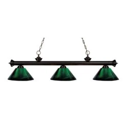 - The adjustable hanging chains are suitable for both sloped and flat ceilings so you can illuminate your billiard table, game room, garage, or man cave with this unique bar light