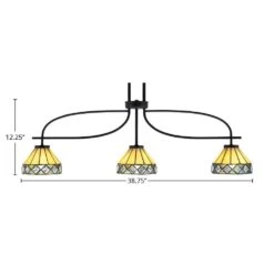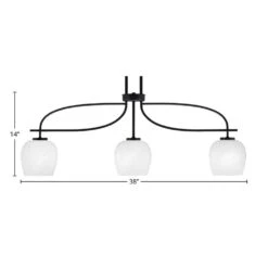 - Dimensions: (L) 60 x (W) 14 x (H) 9.5-inches; Shades: (L) 14 x (H) 9.5-inches; Hanging Chains: (L) 53.5-inches Each; 3-Prong Cord 110V