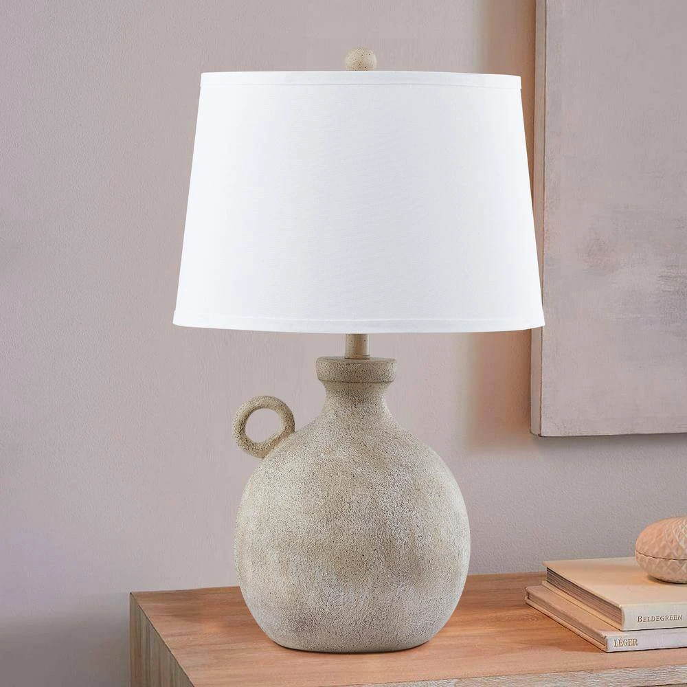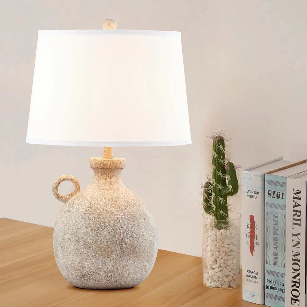 The natural fabric lampshade perfectly combines with the resin lamp base, presenting a simple, beautiful, and elegant modern classical style. The white linen shade is delicate and soft, and the brown Pot-shaped resin base is unique and charming. Provides warm illumination for your reading, studying, and working, while the retro minimalist design adds an elegant artistic touch to your desktop.