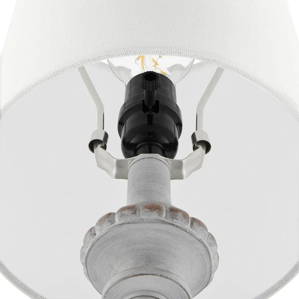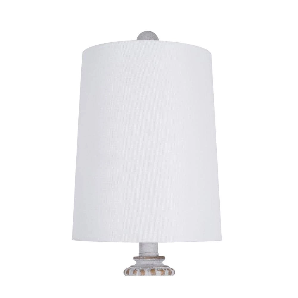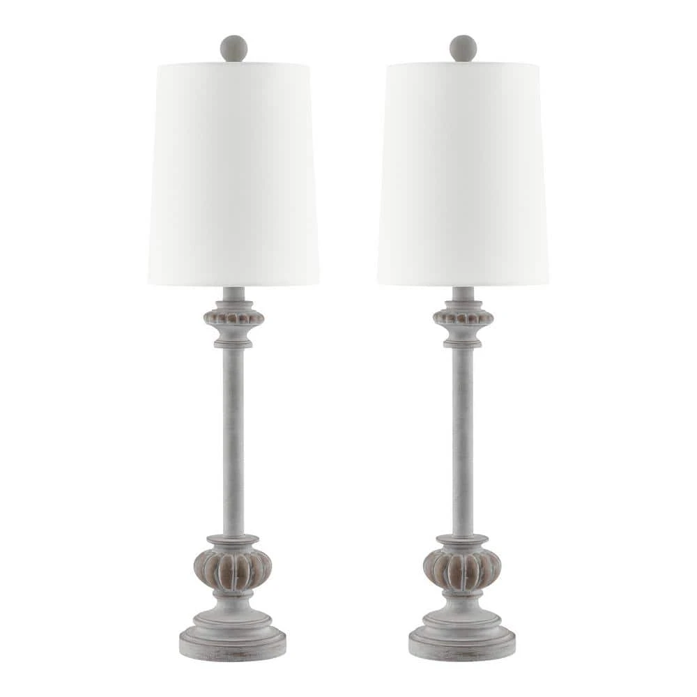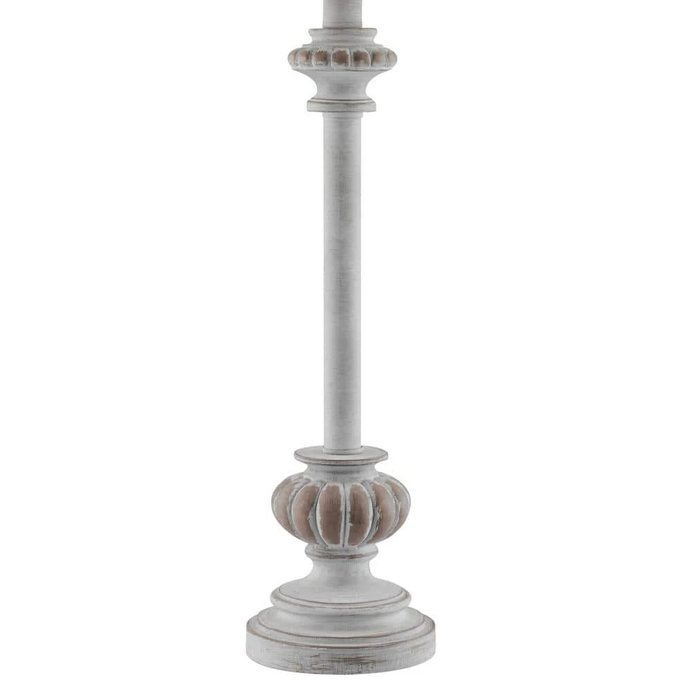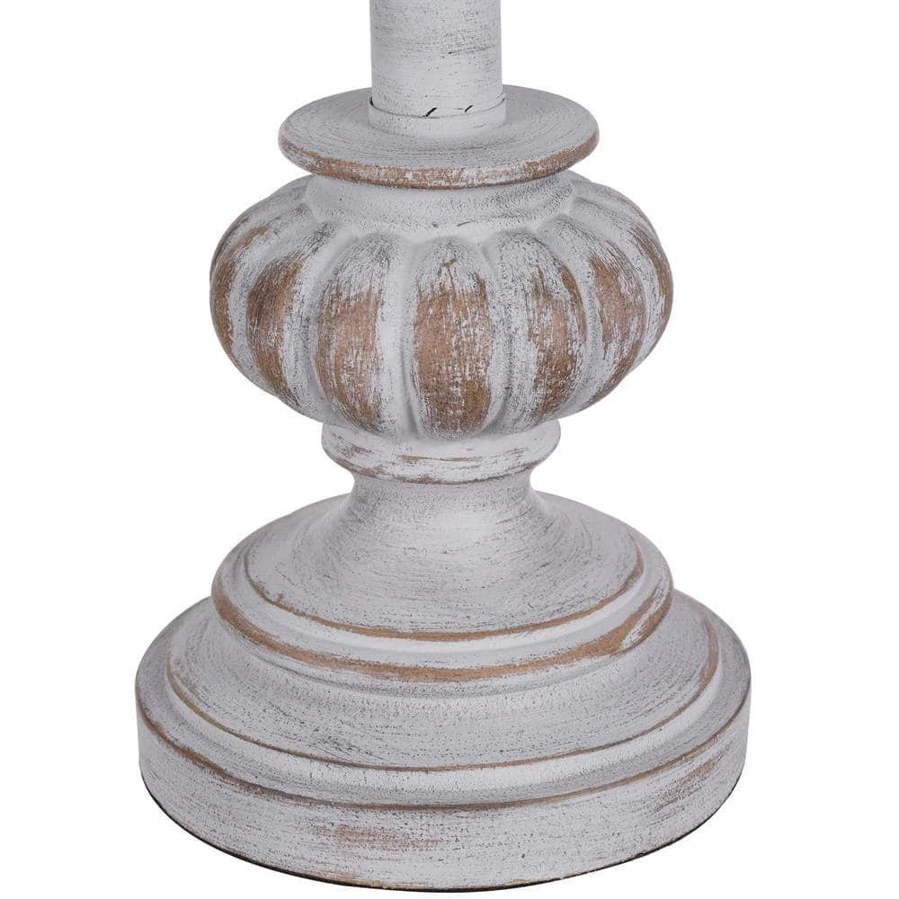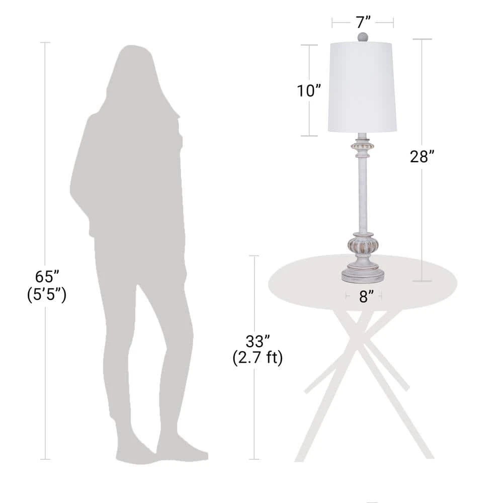 Add that stylish, shabby chic vibe with this set of 2 distressed white finished buffet table lamps. The lamps are crafted with a traditional, country-inspired appeal, these lamps look lovely atop a console table, bedside or any space that could use a touch of soft accent lighting. Each lamp is rounded out with a white linen tapered drum shade for an elegant ambiance. Requires 1 standard 60W E26 base bulb (not included). Also compatible with 9-Watt LED or 13-Watt fluorescent bulbs ensuring long-lasting and energy-efficient illumination. Clean with a soft, dry cloth; no harsh chemicals or abrasive cleaning materials.