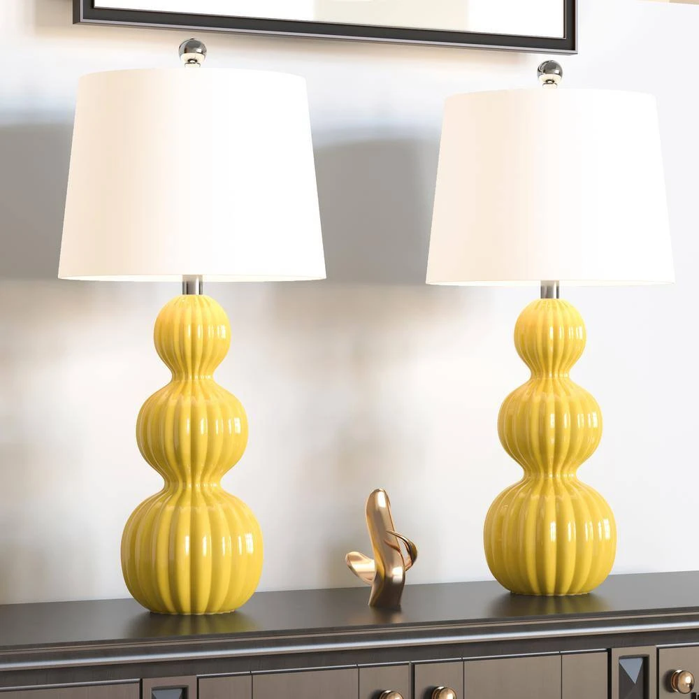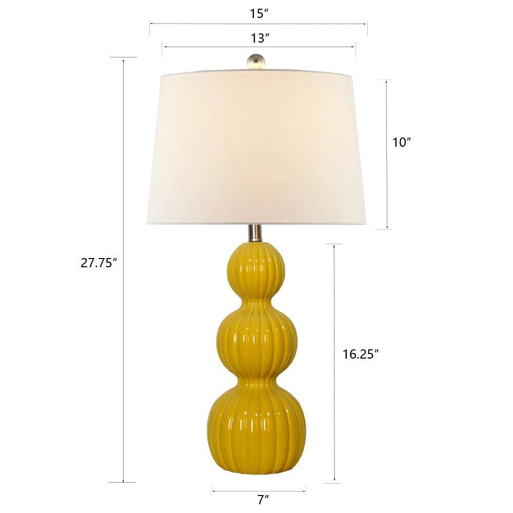 Sold as a 2-piece set, this modern table lamp combines modern minimalism, modern industrial and artistic elements, with a gourd-shaped design of ceramic body in a positive yellow finish, very distinctive and suitable for modern home decoration. Selected white cylindrical linen lampshade, strong light transmission, white linen out of the light is soft and non-irritating, with a three-way switch, simple and fast, can better meet the basic daily lighting needs, but also the best choice for modern table lamps. Maxax is a global brand, the product through the UL certification, safe and stable quality.