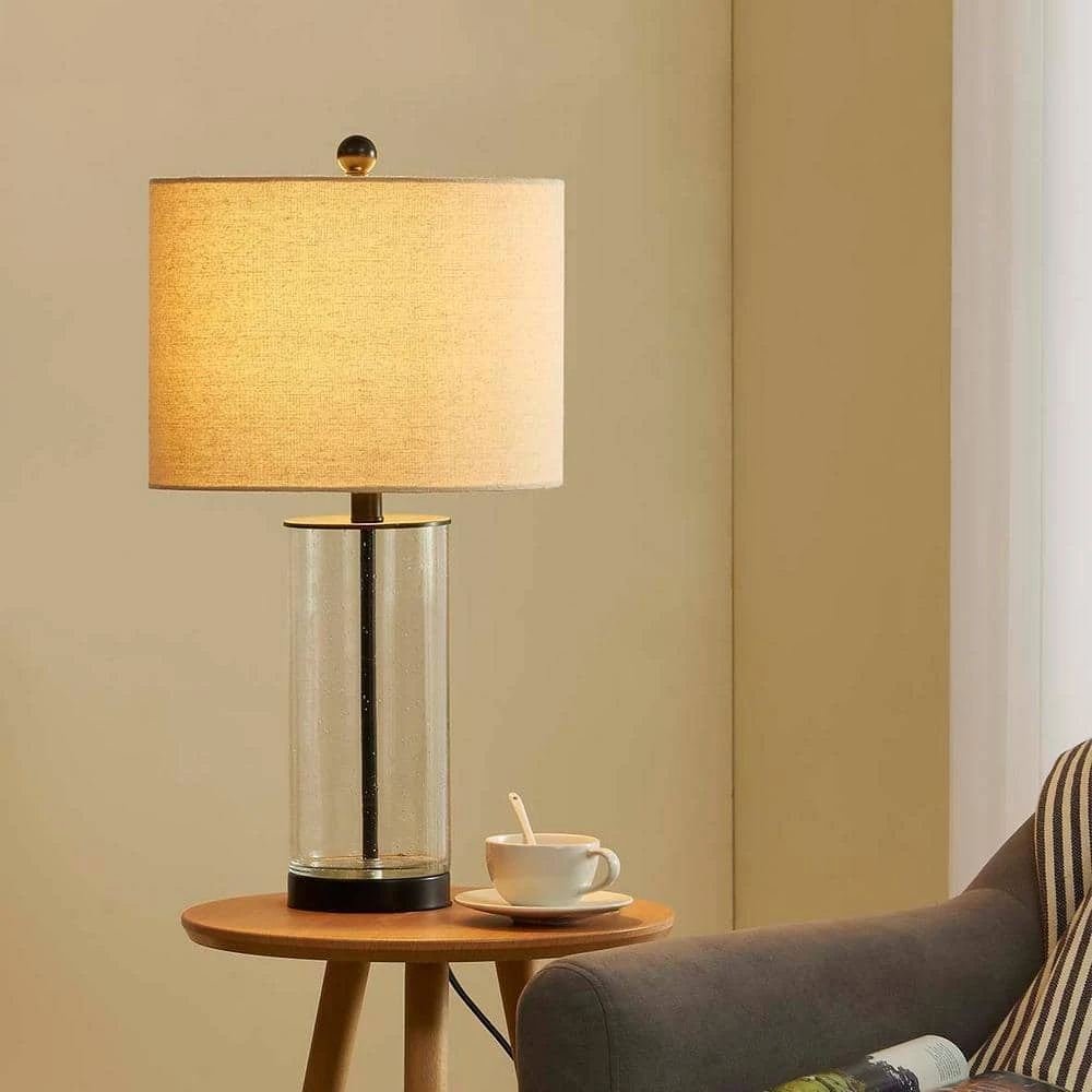 Combining elements of modern simplicity, modern industry and art, this table lamp features a cylindrical body as the centerpiece of its design, with a simple and gorgeous clear light colored glass and baked-on black finish, perfect for modern home decor. With an oatmeal colored cylindrical linen shade, it is easy to install and remove and has great light transmission to meet basic daily lighting needs and is the perfect choice for a modern table lamp. Maxax is a global brand and the products are UL certified to create excellent lighting fixtures with safe and stable quality.