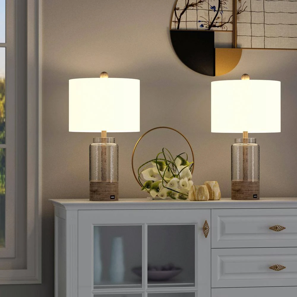 Simple yet elegant this desk lamp features a mason jar-shaped design and its unique and innovative design will add an eye-catching addition to your home. The solid gray resin base is perfectly combined with the corrugated clear glass, showing a simple and natural farmhouse style. The light shines through the high-quality soft oatmeal-colored fabric lampshade and emits a warm, comfortable glow, creating a warm and comfortable atmosphere.