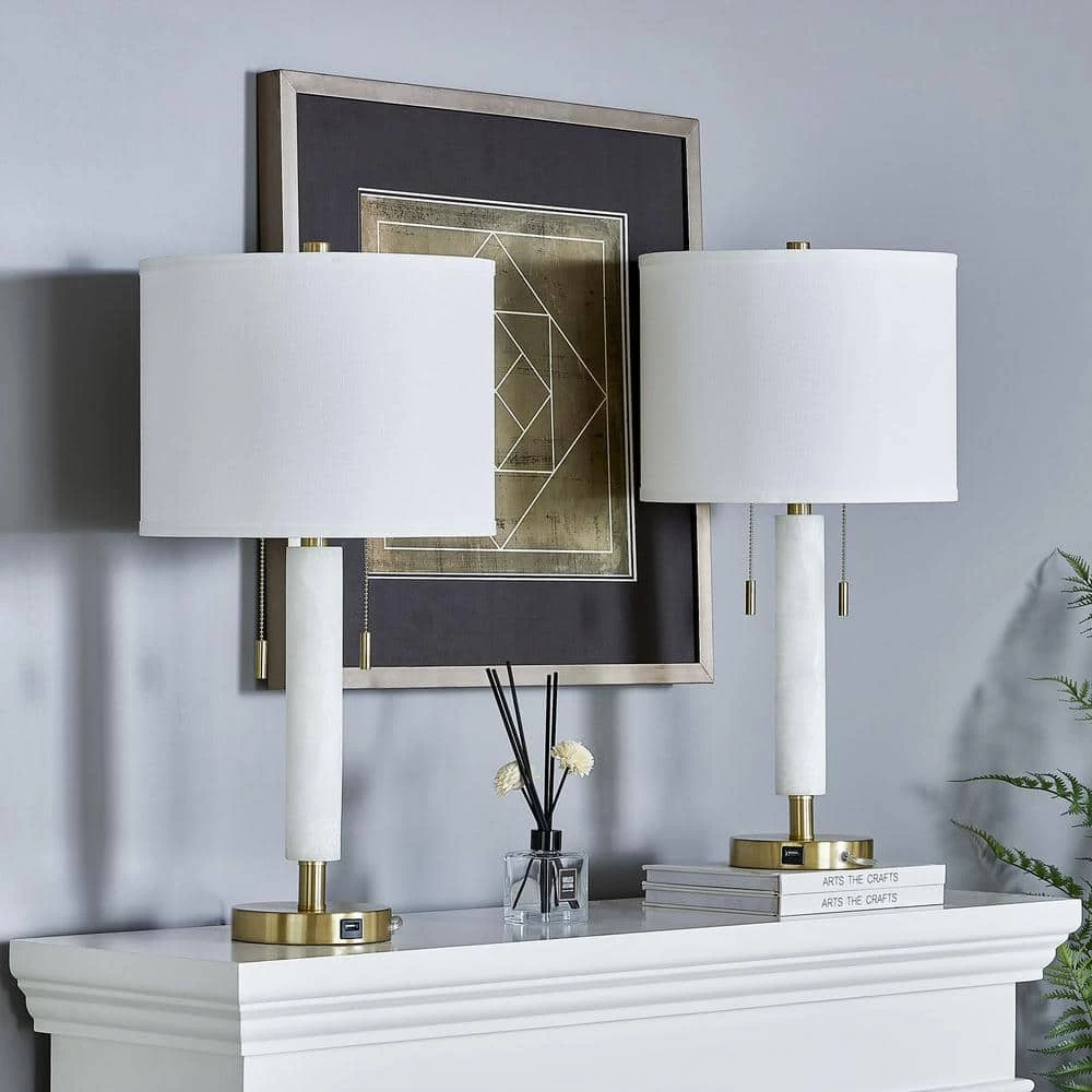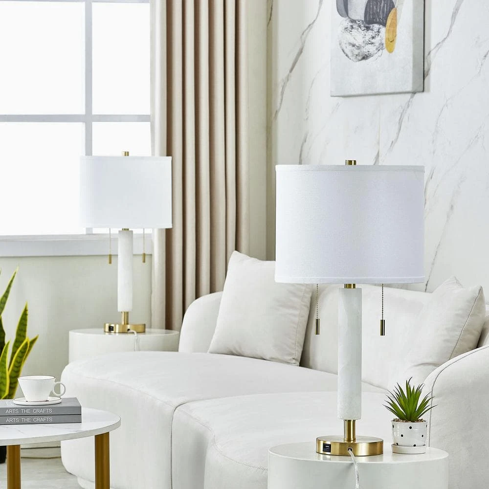 The double-head dolomite table lamp brings unique and beautiful decoration to your home with its simple and smooth line design and attractive fashion style. The combination of the glossy golden surface and the delicate and soft dolomite decoration perfectly demonstrates the charm of industrial design style. Practical and beautiful, it perfectly matches a variety of styles and is the perfect choice for modern table lamps.