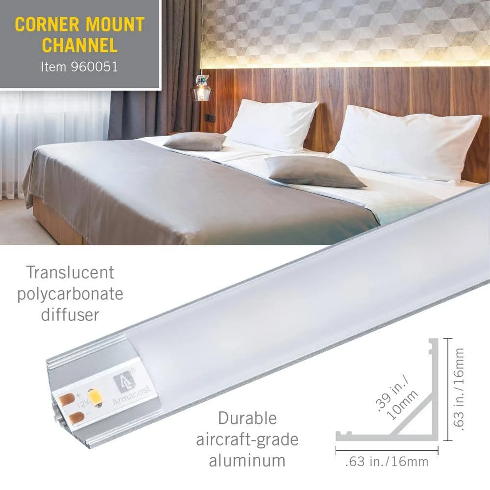 The channel is made from high quality, double-anodized, aviation-grade aluminum alloy and available in two profiles; flat and angled. It can be fitted with the included frosted polymer cover to conceal the LEDs and diffuse the light output. The channels are useful for installations in which the lighting will be visible, such as on the underside of a shelf or in a display cabinet, or to soften lighting to eliminate reflective hot spots on a nearby surface. The channels can be cut to length using a fine-tooth handsaw and run in sequence to create a longer fixture. The channel can be mounted to surfaces with the use of double-sided adhesive tape or included mounting brackets. The mounting bracket guarantees easy and secure mounting to the desired surface. It can also be used as a connector between channels.