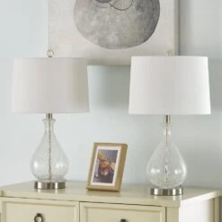 This modern table lamp from Maxax home features a teardrop design as the glass body, a clear light and a sand nickel finish, very simple and stylish, a blend of modern simplicity, modern industry and art, perfect for modern home decor. The white drum shade is chosen for good light transmission, easy to install and remove, and can better meet basic daily lighting needs.Maxax is a global brand that creates exceptional lighting fixtures, and the products are UL certified for safe and stable quality.