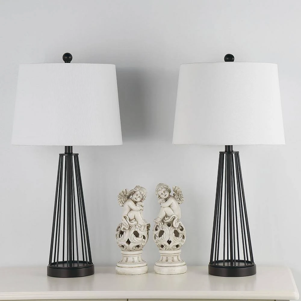 Sold as a 2-piece set, this modern table lamp blends modern industrial, contemporary minimalism and artistic elements with a metal line hollow base design combined with a black finish, perfect for modern home decor. The choice of white drum shade with strong light transmission and soft light from white linen, along with a 3-way switch for simplicity and speed, can better meet basic daily lighting needs, and is also the best choice for modern table lamps. Maxax is a global brand with UL certified products, creating excellent lighting fixtures with safe and stable quality.