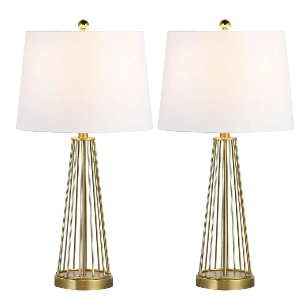 Electroplated brass finish lamp body, lamp base with characteristic metal line hollow design, a blend of modern industrial, modern minimalist and artistic elements, is the best choice for modern home decoration. Selected white lampshade, strong light transmission, white linen lampshade out of soft light does not stimulate, while equipped with a 3-way switch, simple and fast, can better meet the basic daily lighting needs. Maxax is a global brand, the product has passed UL certification to create excellent lighting fixtures, safe and stable quality, this product is intended to be sold as a 2-piece set.