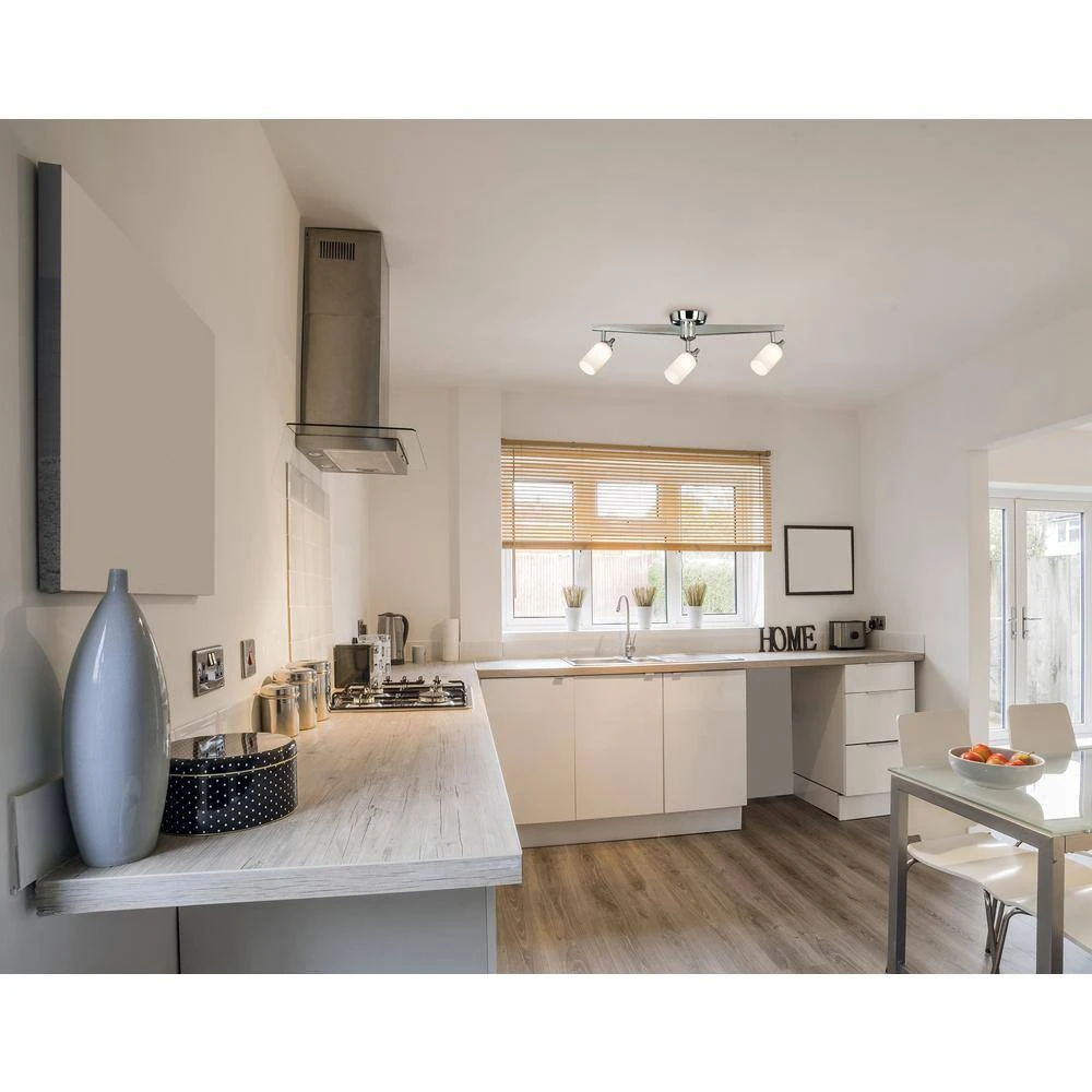 The Eglo 1600 Penn Ave three light track light uses simple, stylish design to function as a sharp contemporary or transitional fixture. With adjustable Integrated LED lights and a clean Chrome finish, the fixture will accent your modern decor. The multifunctional lights work great as directional accent lighting and task lighting.