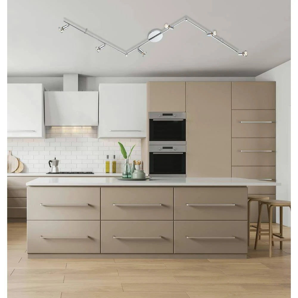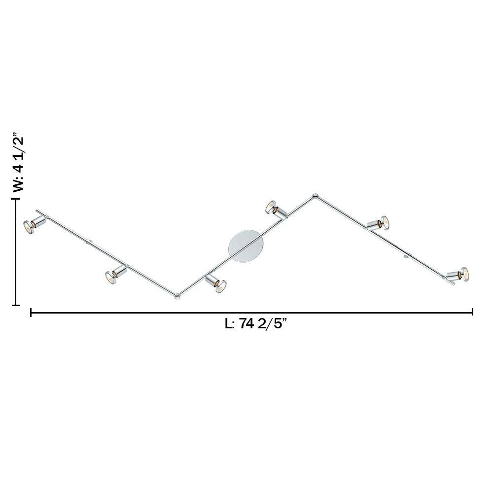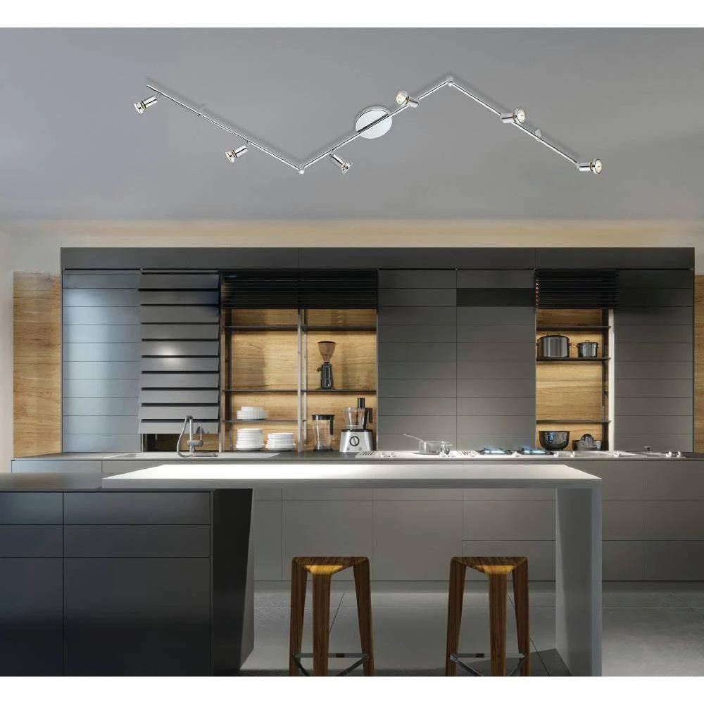 The Eglo Buzz 2, 6 light track light, uses simple, stylish design to function as sharp contemporary or transitional fixture. With adjustable halogen lights and adjustable track and clean chrome finish, this fixture will accent your modern decor. These multifunctional lights work great as directional accent lighting and task lighting.