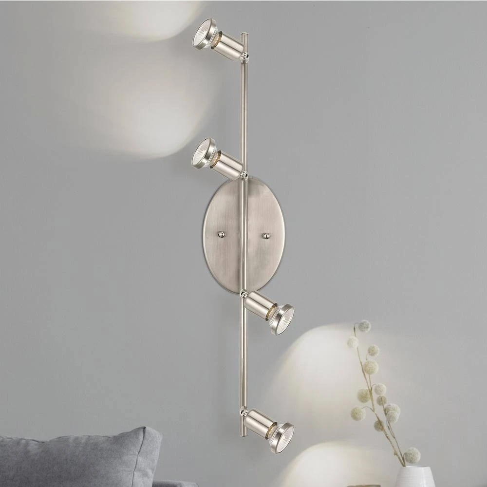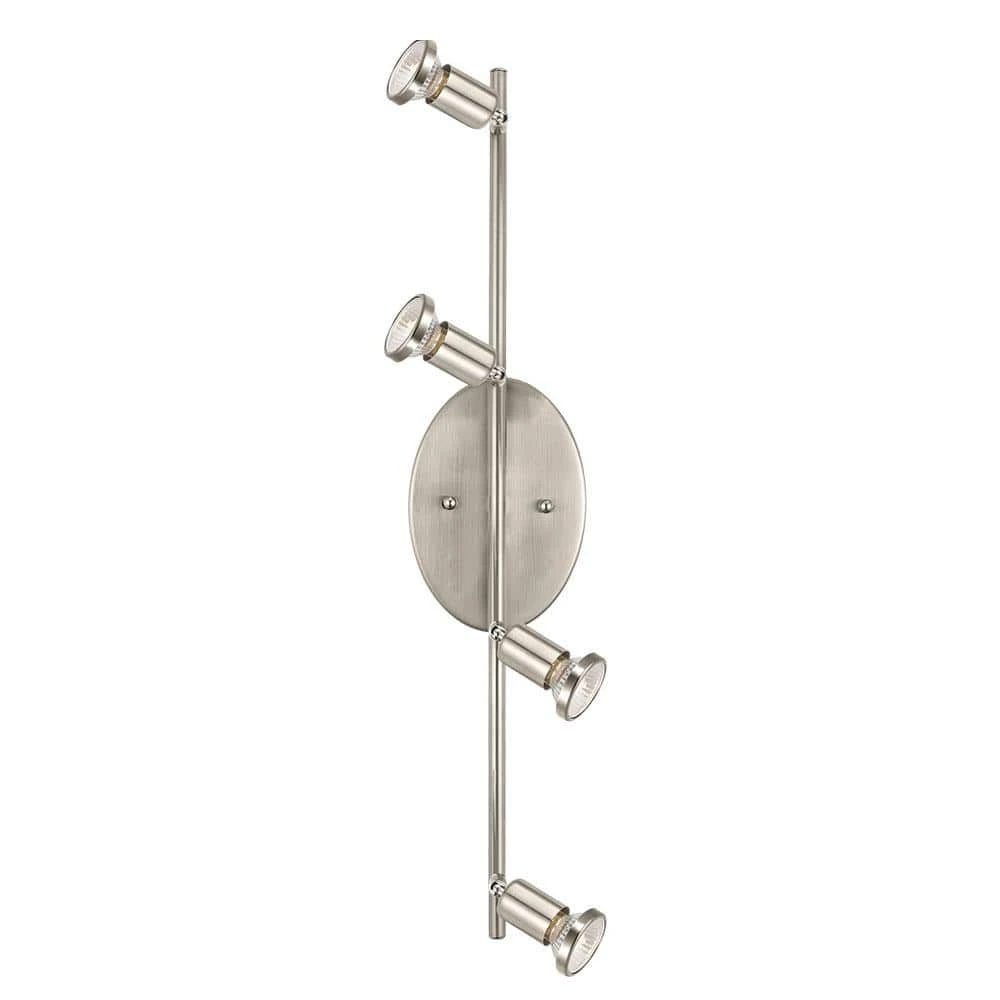 The Eglo Buzz four light track light uses simple, stylish design to function as a sharp contemporary or transitional fixture. With adjustable halogen lights and a clean matte nickel finish, the fixture will accent your modern decor. The multifunctional lights work great as directional accent lighting and task lighting.