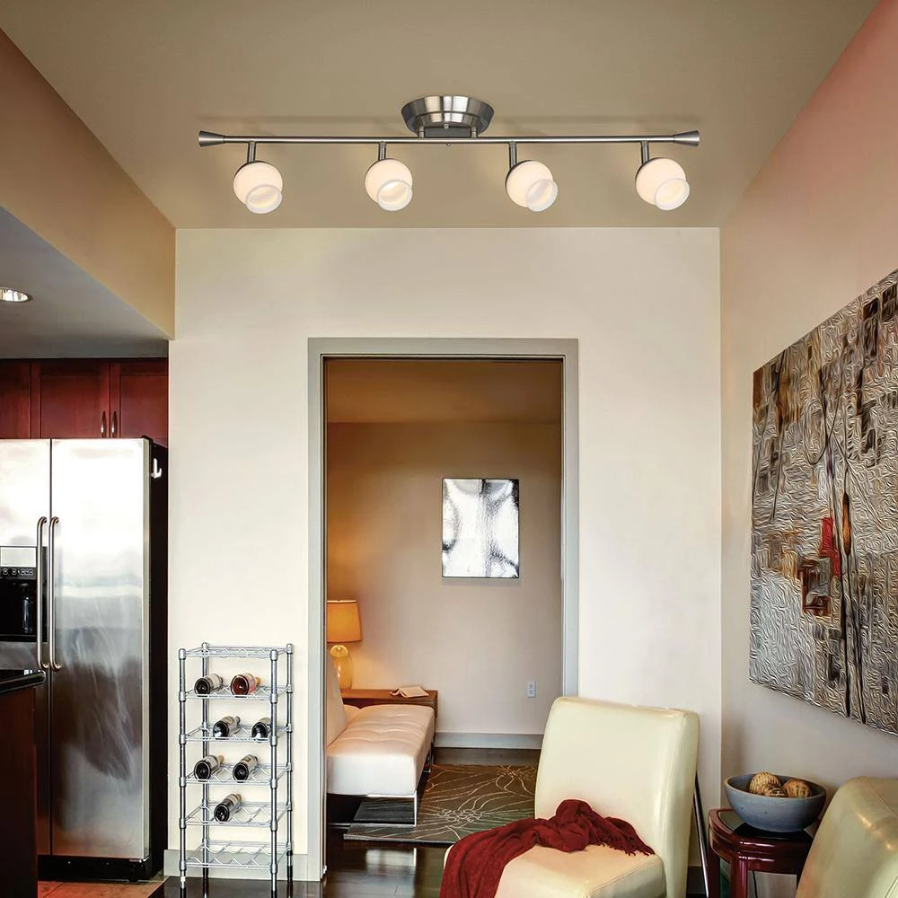 The Eglo Mill Street four light track light uses simple, stylish design to function as a sharp contemporary or transitional fixture. With adjustable Integrated LED lights and a clean Brushed Nickel finish, the fixture will accent your modern decor. The multifunctional lights work great as directional accent lighting and task lighting.