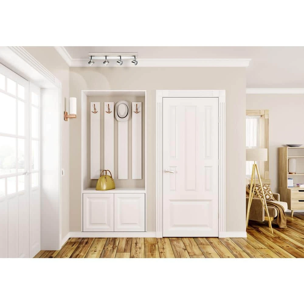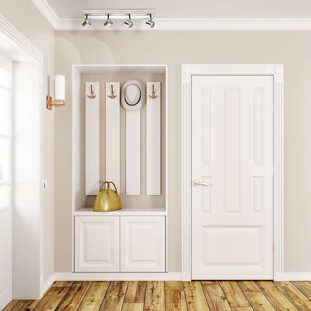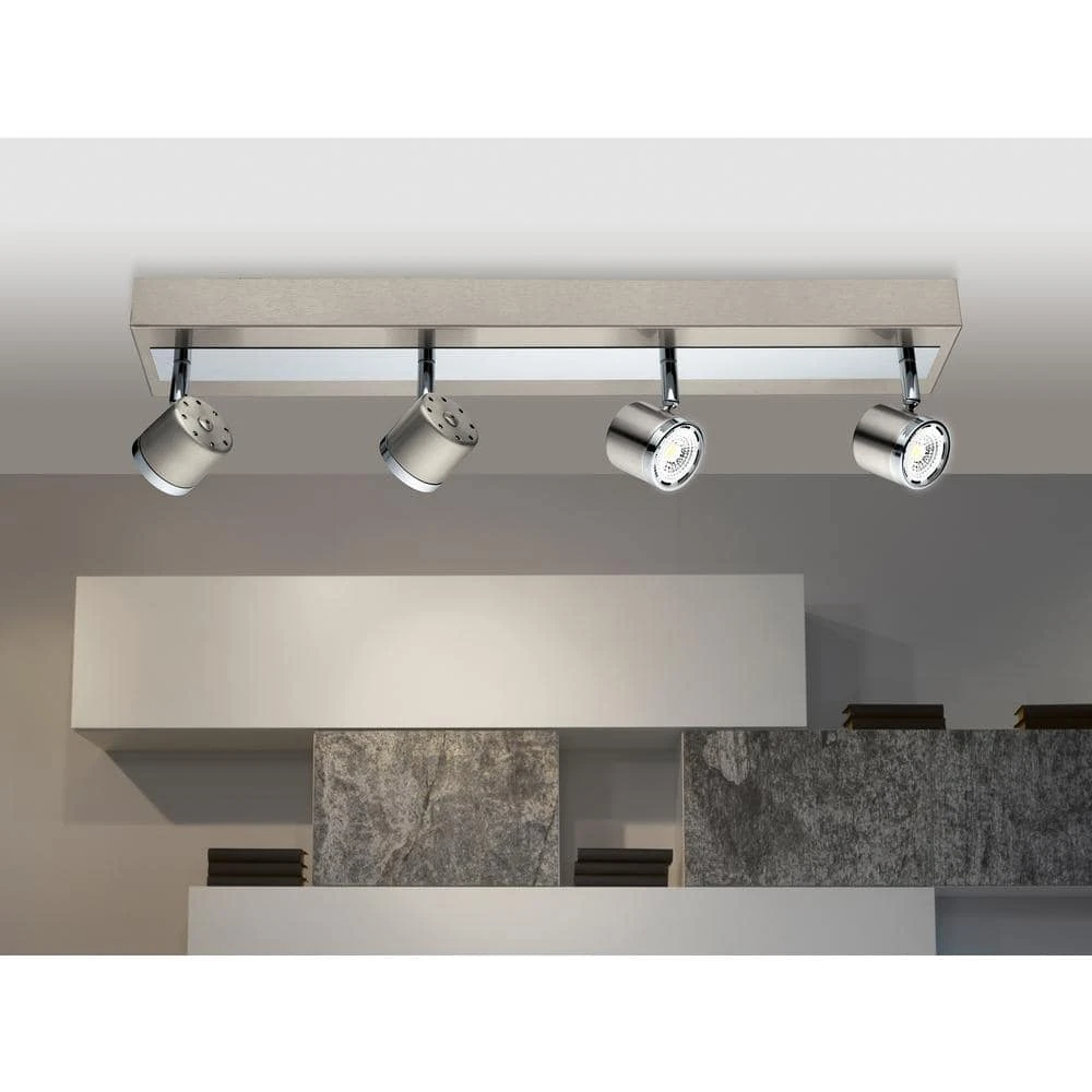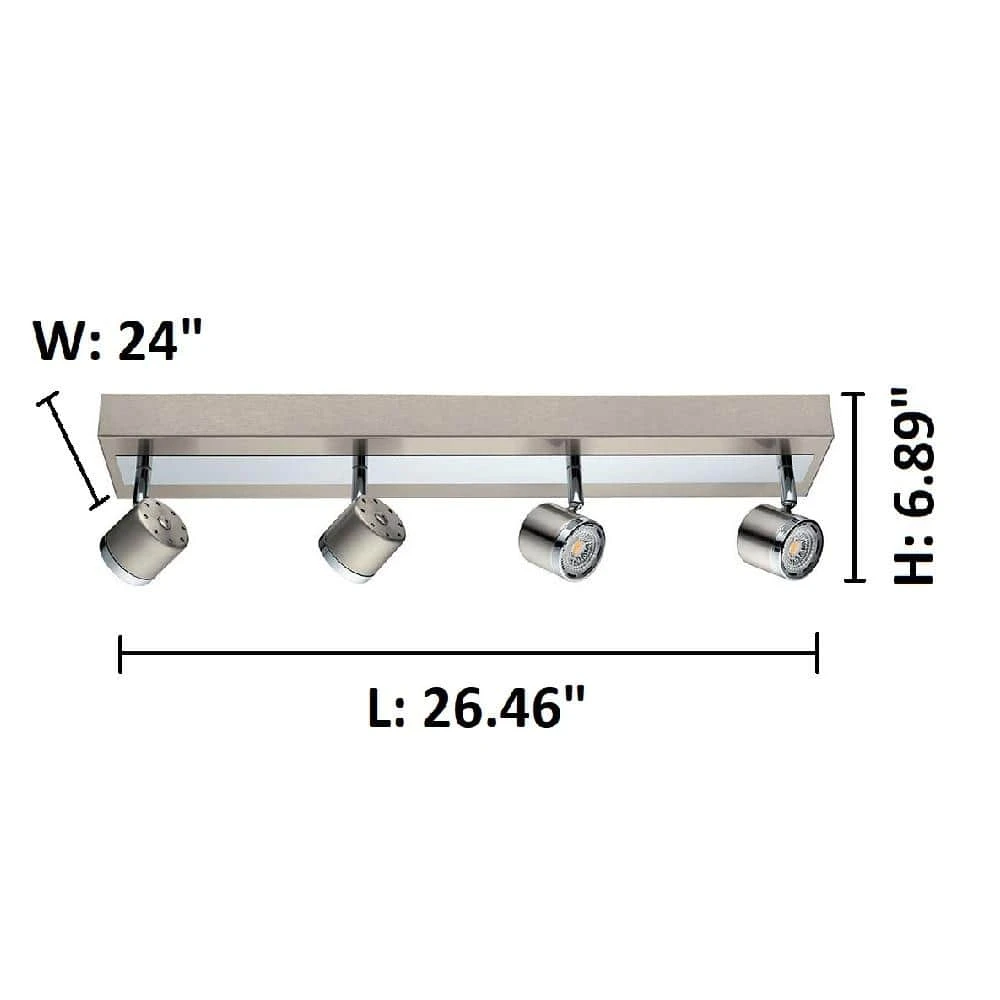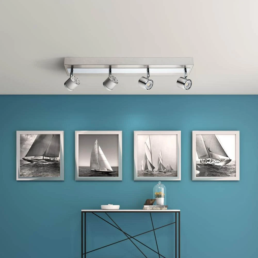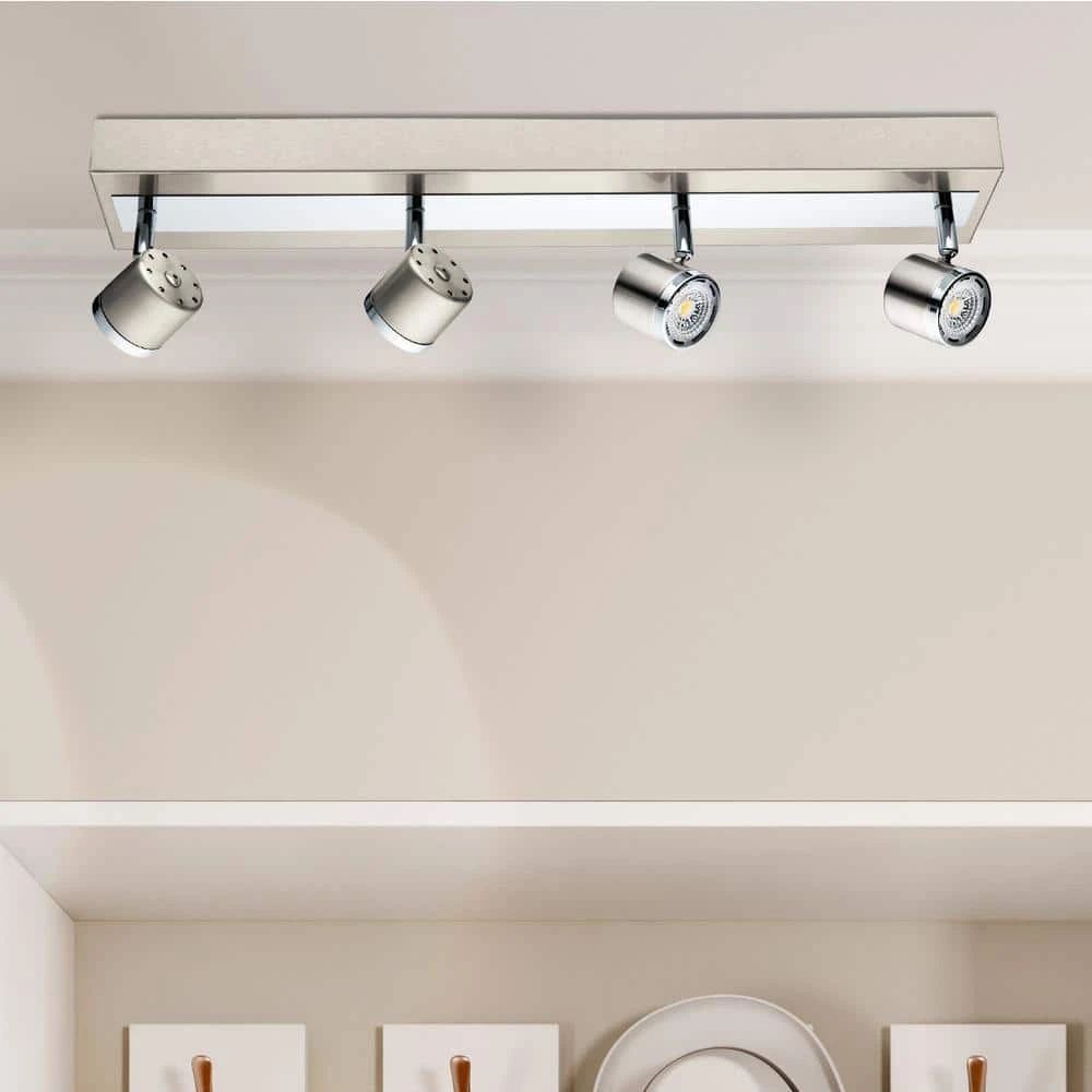 The Pierino track family has a clean, modern style design. The chrome accentuates the satin nickel family while reflecting the integrated LED light. The heads are movable as to change the direction of light where as needed.