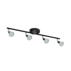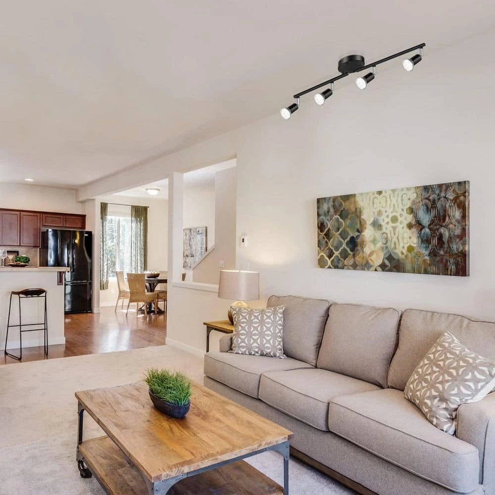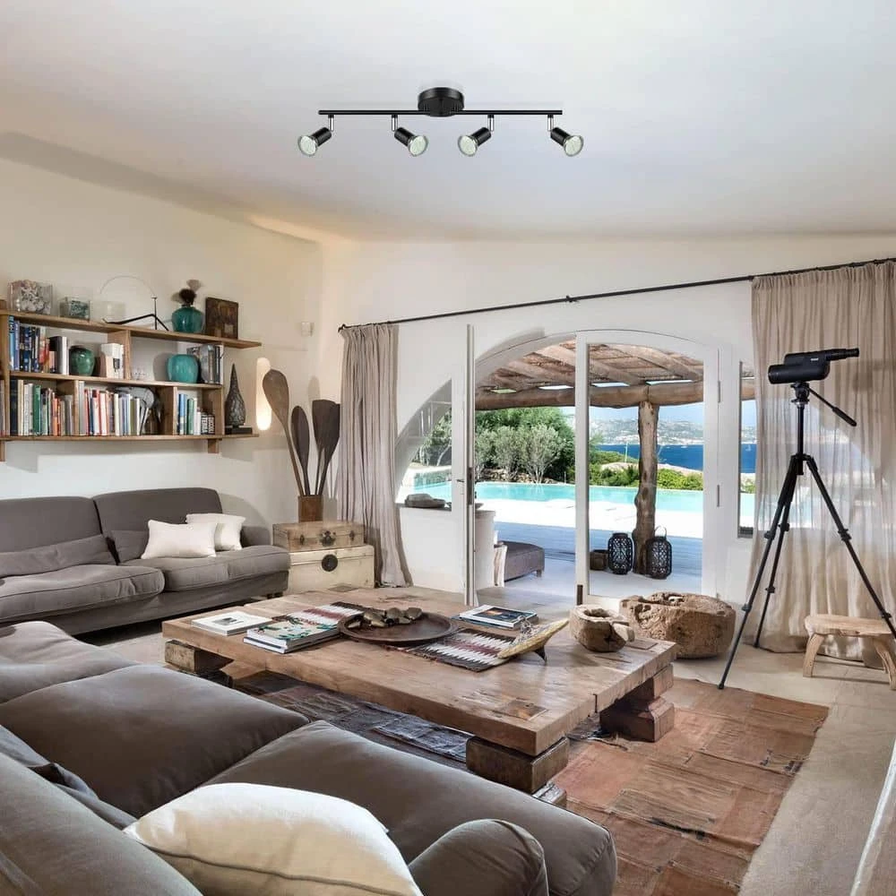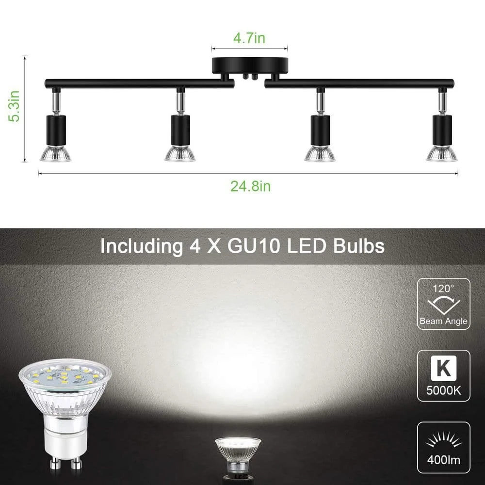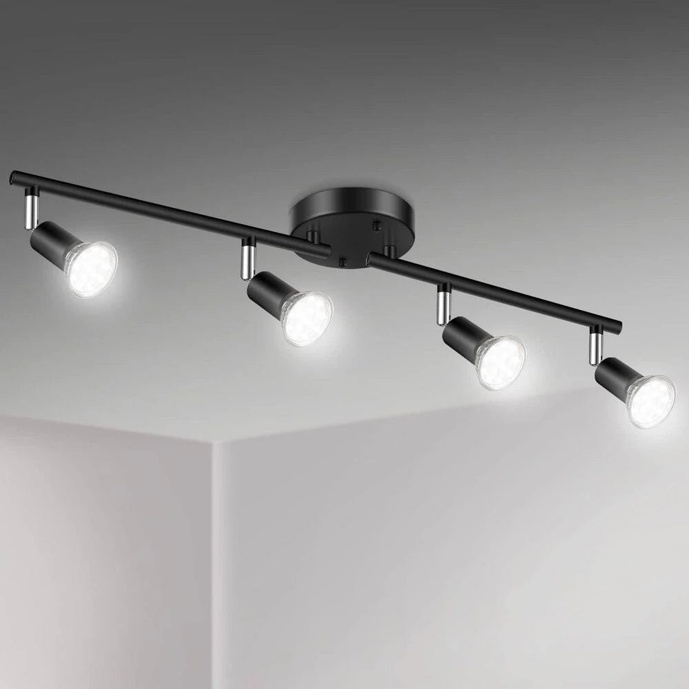 Upgrade your home lighting with the versatile and stylish LED 4-Light Track Lighting Kit in a sleek matte black finish. Its minimalist design combines industrial and traditional elements, featuring a straight track bar and exposed sockets for a contemporary touch. With flexibly adjustable light heads, this fixture allows you to customize lighting by rotating 270° horizontally and 90° vertically to illuminate any area. The kit includes 4 energy-efficient GU10 LED bulbs, providing 400 lumens of bright daylight white light (5000K) with accurate color rendering (85 CRI). Made of durable metal with corrosion-resistant properties, this lighting kit is easy to install on flat, sloped, or vaulted ceilings. Perfect for any space, it offers strong, focused illumination ideal for bedrooms, kitchens, bathrooms, or even hospitality and retail settings.