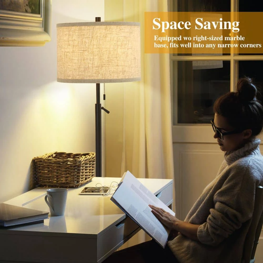 - This floor lamp for living room is constructed of fabric round lampshade and marble base that provides a cozy feeling.