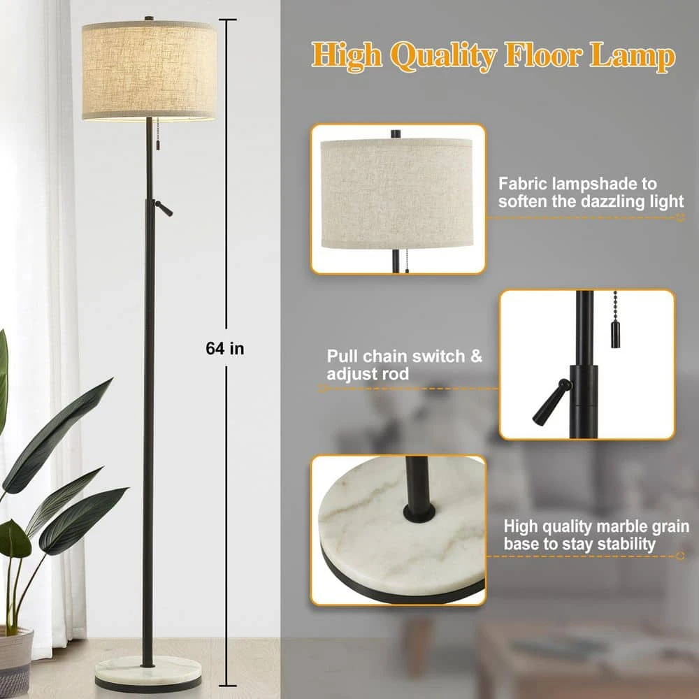 - The advanced marble standing floor lamp features the most flexible adjustable height poles. Equipped wo right-sized marble base, fits well into any narrow corners.
