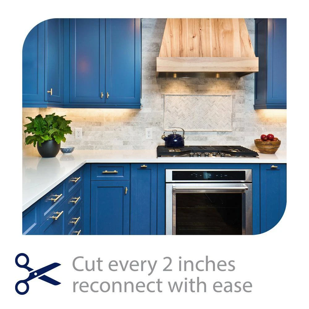 Build an economical and versatile layered lighting system with Gemini LED Tape Light. Gemini is dense LED Tape Light with a single continuous phosphor coating that eliminates unsightly diode imaging and is great for applications where the light is reflected onto a surface or in direct line of sight. Gemini is easy-to-setup with seamless and scalable run lengths up to 24 ft. on a single power supply. Flexible, customizable and with a low profile. Gemini LED Tape Light delivers precision and performance with 4-selectable color temperatures from warm 2700K to cool 4000K. Smooth robust illumination deployed from evenly placed UV coated LED for cove, accent and task lighting applications. Strong 3 m adhesive bond for easy installation. Gemini can be cut in the field every 2 in. and re-connected with safe and secure connectors. Gemini is UL and cUL Damp Location listed and CEC Title 24 Compliant.