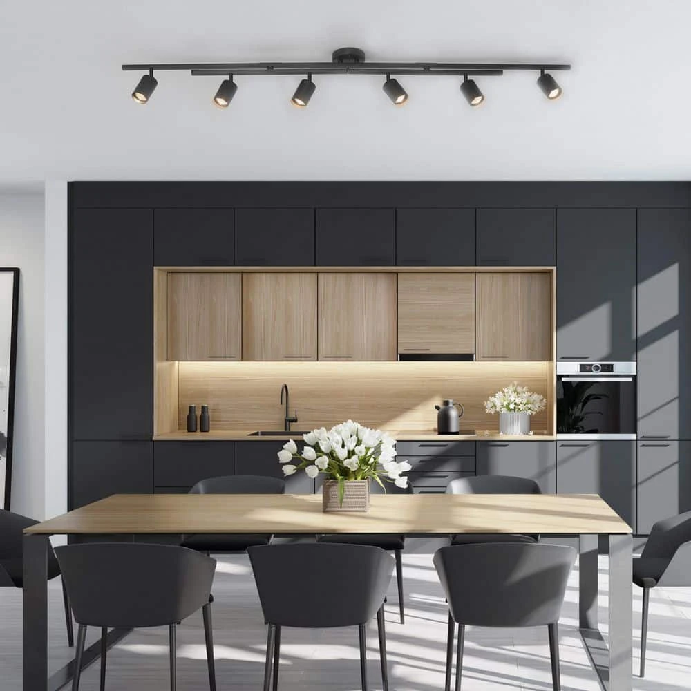 The Waylon 6-Light Track Light by Globe Electric is the epitome of functional and minimalist design. This light illuminates a larger space with ease while bringing a stylish element to the room without taking over. The unique double center swivel bar design and matte black pivoting track heads allow you to effortlessly create different lighting ambiances. From highlighting your favorite artwork in your living room to making sure you have all over task lighting in your kitchen, this track light is the ideal lighting for any living space you choose.