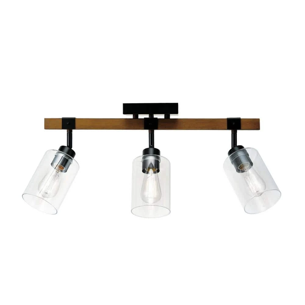 Add a warm finishing touch to any decor with the Austin 3-Light Track Light by Globe Electric. Mixing a warm dark wood finish with matte black metal accents, this 3-light track bar is a stunning way to bring an old-world feel to your living room, dining room, study or hallway. The minimal 4.75 in. W creates a statement while offering ambient lighting throughout your home. Each track head can be adjusted to point the light in the perfect direction while clear glass shades finish the design and showcase the bulb of your choice. Try vintage Edison bulbs to complete the modern farmhouse feel or try round bulbs for a completely unique look.