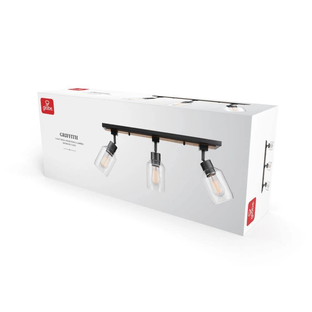 Add a pleasant welcoming touch to any decor with the Griffith 3-Light Track Light by Globe Electric. Mixing a warm dark wood finish with rustic dark metal accents, this 3-light track is a wonderful way to bring an old world feel to your living room, dining room, study or hallway. The 25 in. W creates an ideal statement lighting piece that offers ambient lighting throughout your home. Each track head can be adjusted to point the light in the perfect direction while clear glass shades finish the design and showcase the bulb of your choice. Try a vintage Edison bulb to complete a rustic farmhouse feel or try a round bulb for a completely unique look.