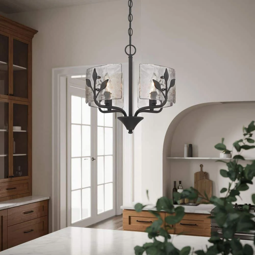 Bring the beauty of the outdoors inside with this stunning light fixture, featuring a natural design accented by delicate leaves and textured hammered water glass. Its organic aesthetic adds a serene, earthy touch to any space, creating a warm and inviting atmosphere.Perfectly versatile, this light enhances hallways, living rooms, dining rooms, and bedrooms alike-blending effortlessly with a variety of decor styles. The hammered water glass softly diffuses light, casting a gentle, shimmering glow that transforms your space with subtle elegance.