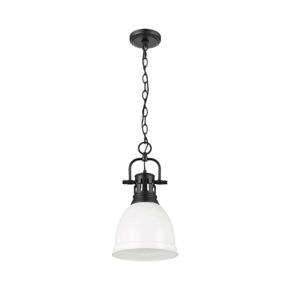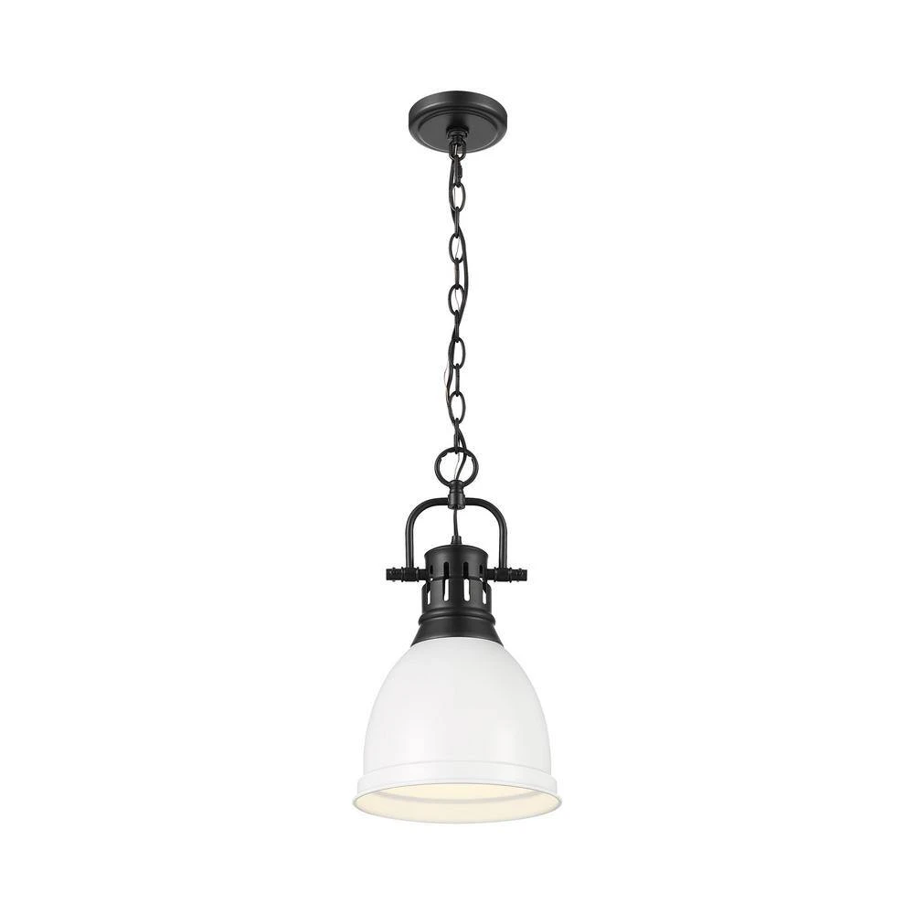 The Duncan collection is contemporary style with an industrial feel. The collection features a variety of simple, traditional silhouettes that are a nod to a bygone era. Transform the look of your room with these classic, vintage-inspired fixtures. A variety of plated and painted metal shade finishes are offered in choice combinations. This small, chain-hung pendant features a may be hung individually or grouped over a bar.
