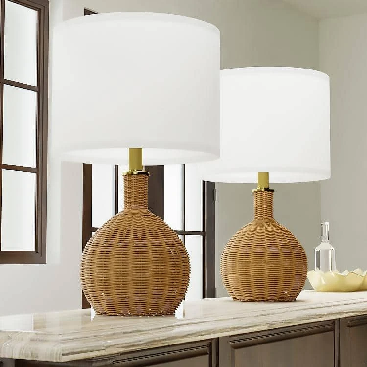 A relatively unique and innovative contemporary table lamp, with a rattan lamp body and a simple white linen lampshade design, the height is 22 in., the overall is moderate and the overall design sense is strong. The 2-way switch can meet the needs of daily family room lighting, living room lighting and home decor. It is suitable for placing in vanity wall, bedside tables, kids room, side table, office desks, etc. After the UL certification of the United States, the product quality is safe and stable, please rest assured to buy and use.