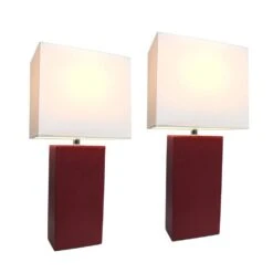 21 In. Modern Red Leather Table Lamps With White Fabric Shades (2-Pack)