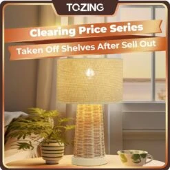 15.4 In. Yellow Rustic Farmhouse Handmade Rattan Table Lamps