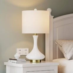 Sacramento 23.5 In. White Modern Ceramic Bedroom Living Room Bedside Desk Nightstand Table Lamps