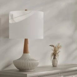 Salem 25 In. Beige Modern Dimmable Resin Bedroom Living Room Bedside Desk Nightstand Table Lamps